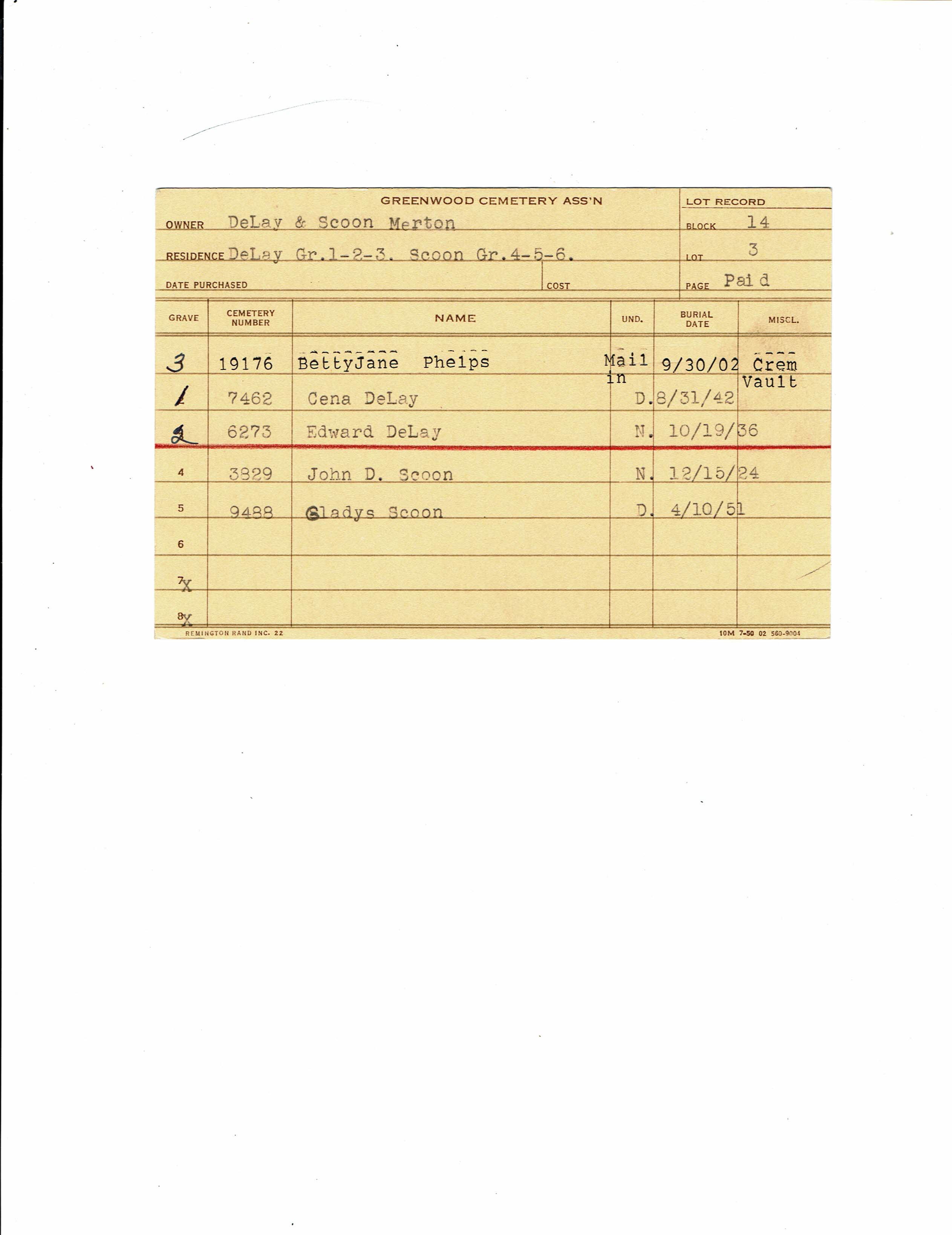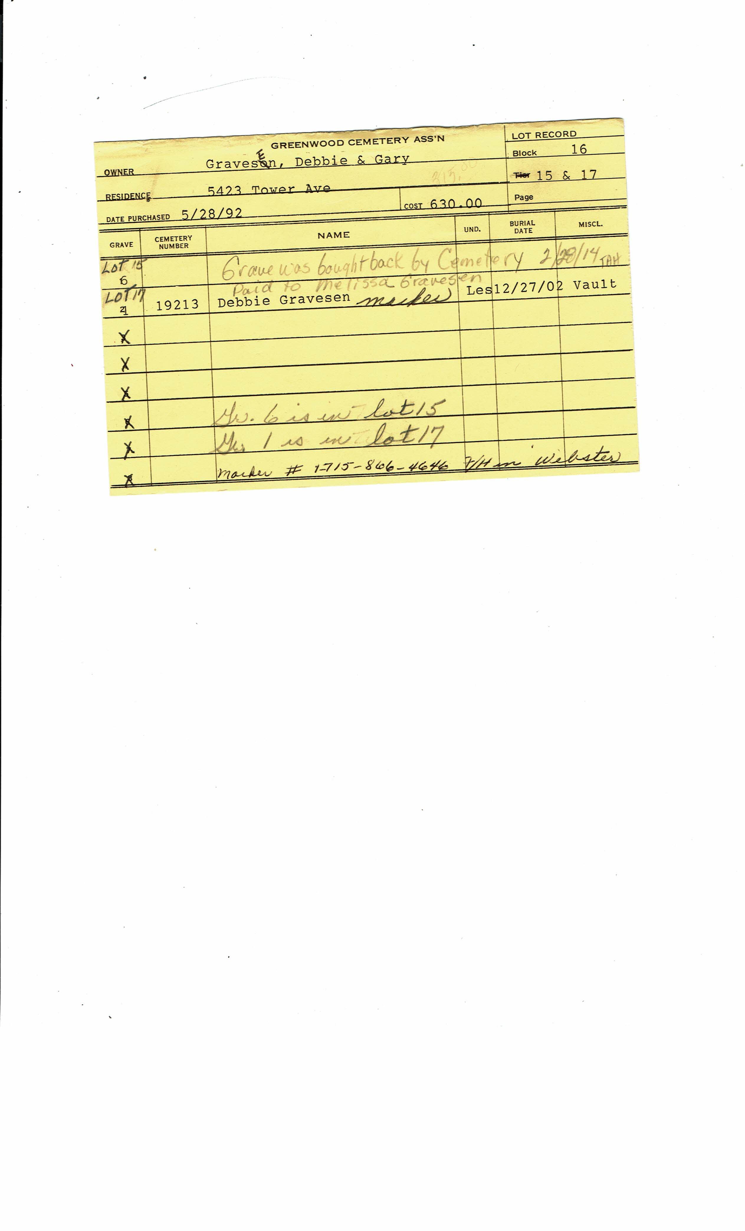 Block 43, Tier 14, Lot 1, Grave 28
