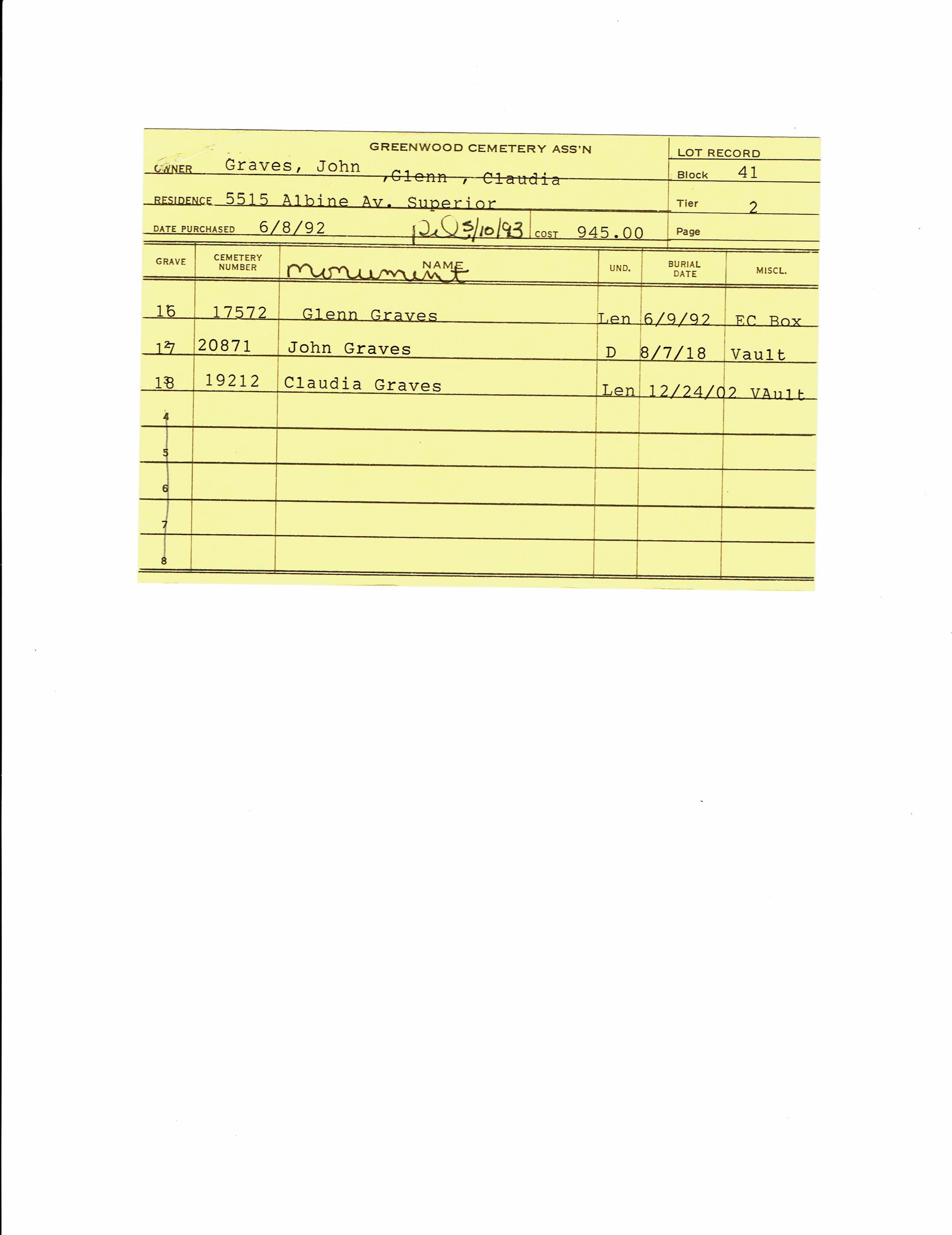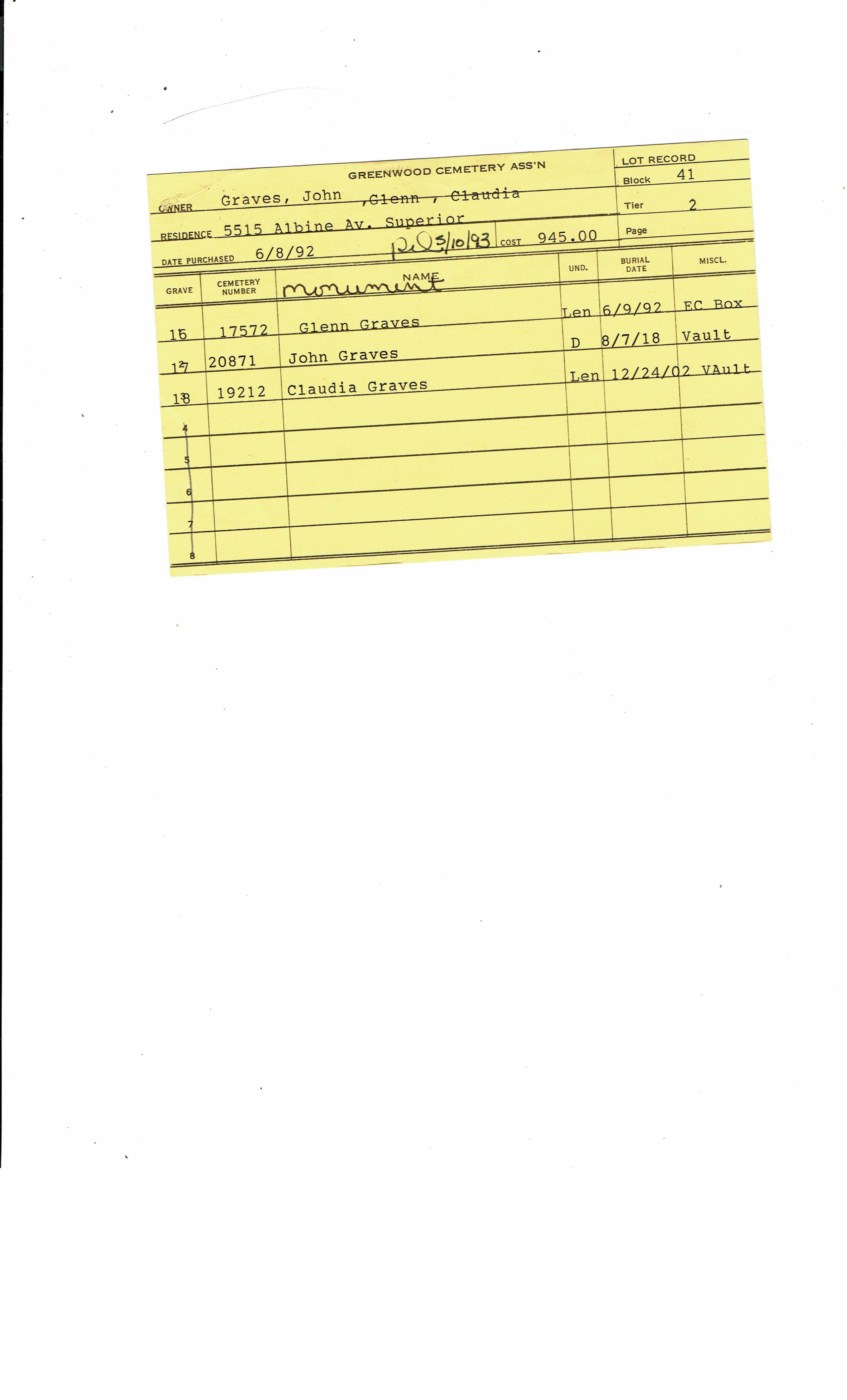 Greenwood Cemetery Association Online Records