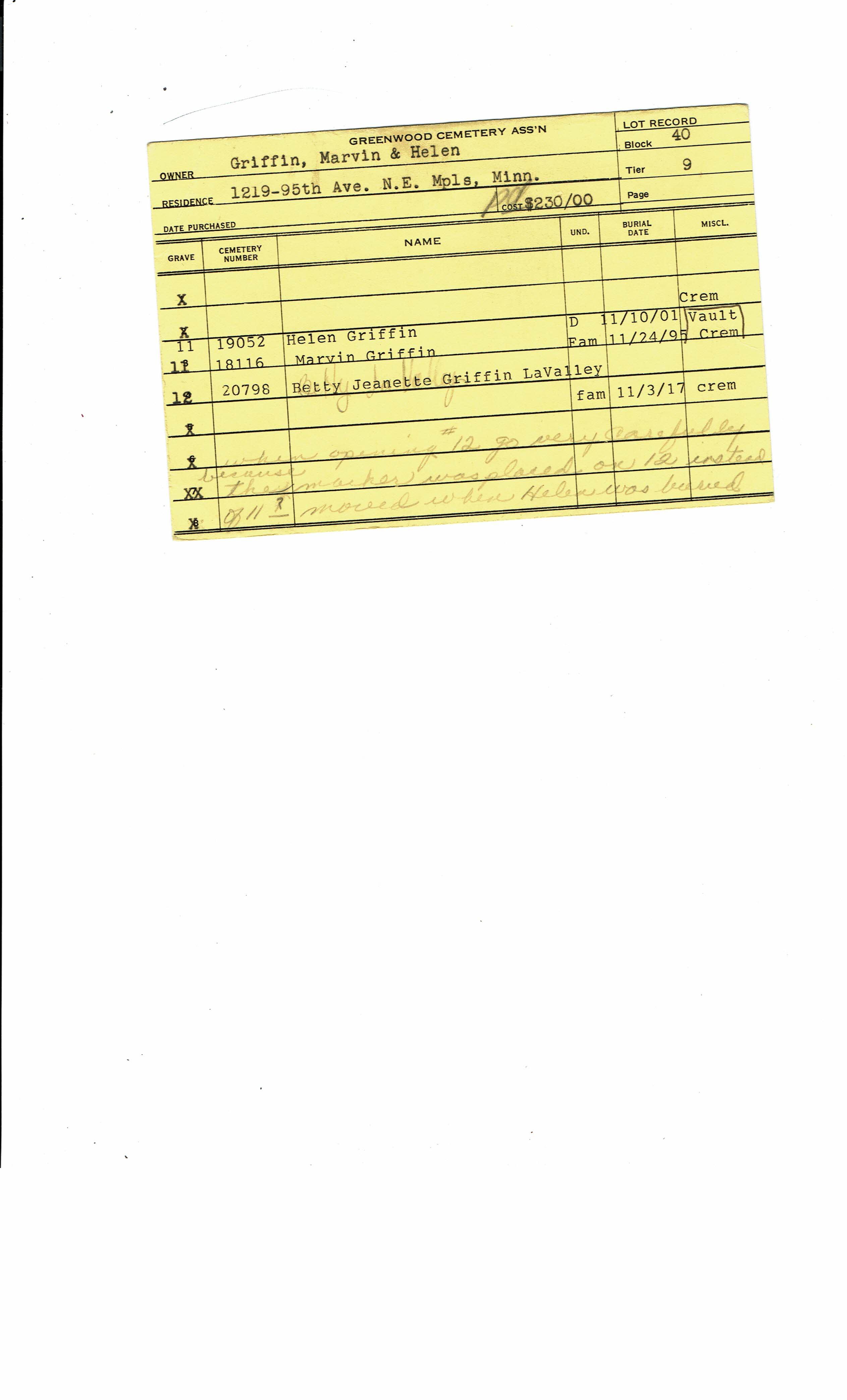 Greenwood Cemetery Association Online Records