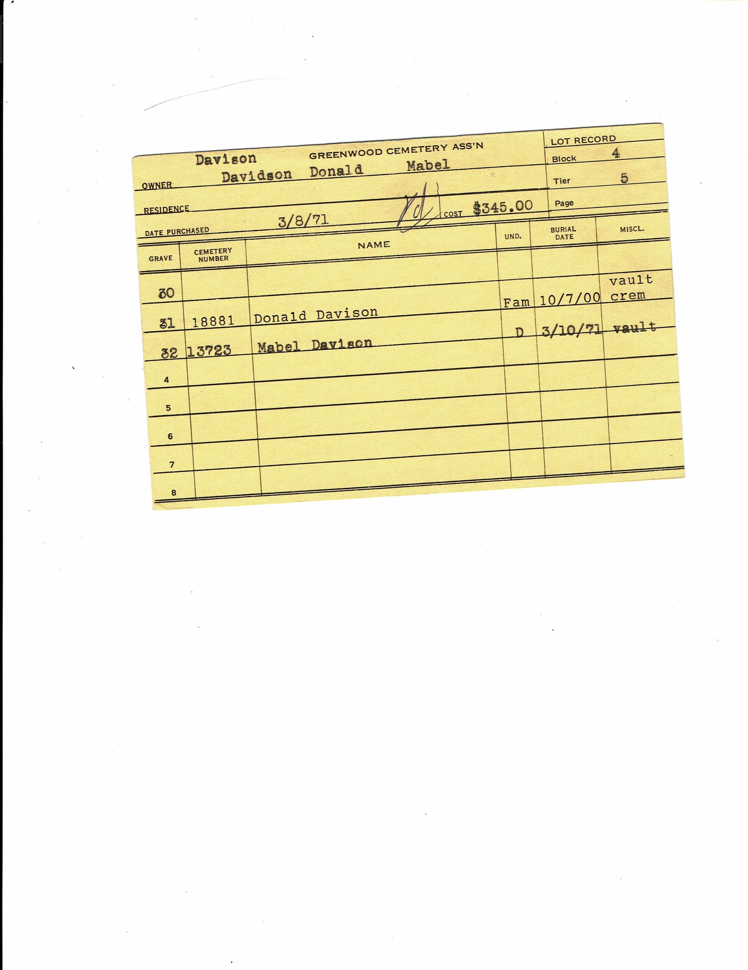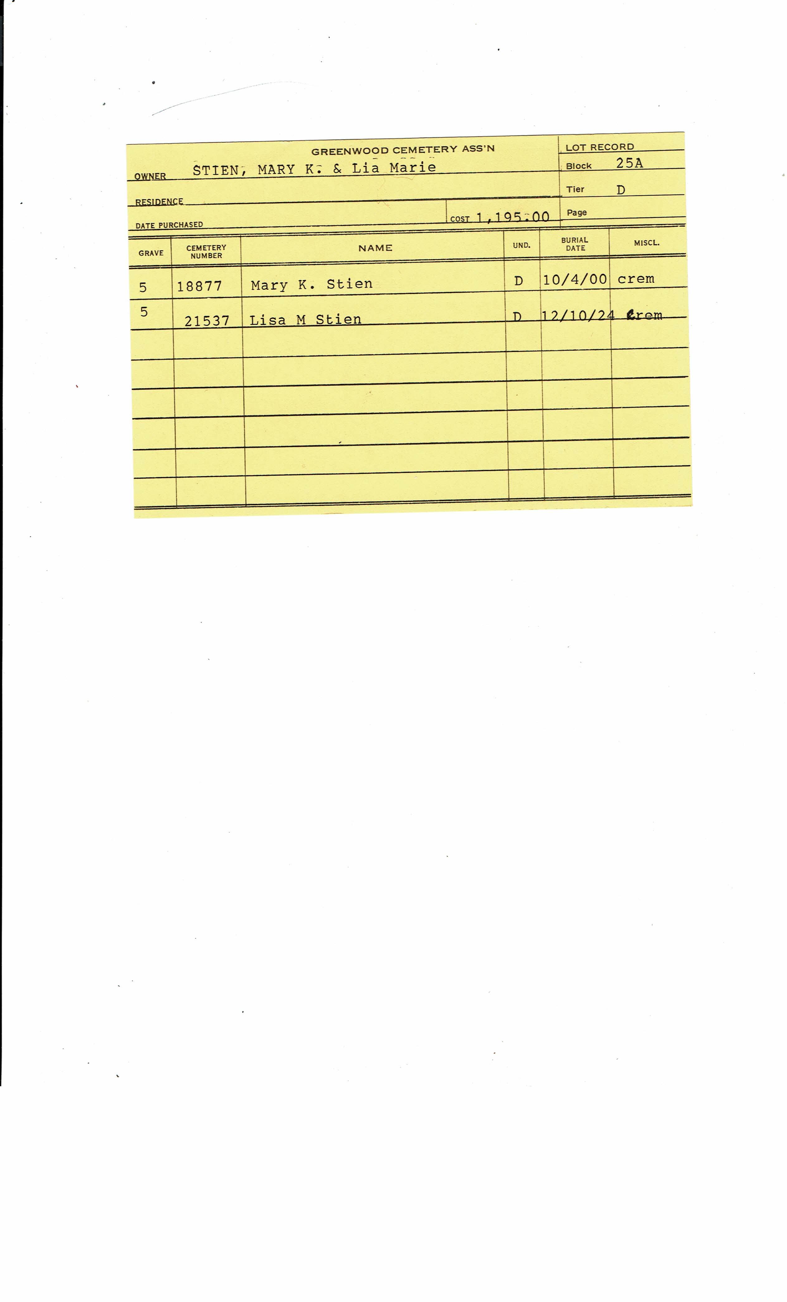 Block 25A, Tier Row D, Lot Unit 1, Grave Niche 5