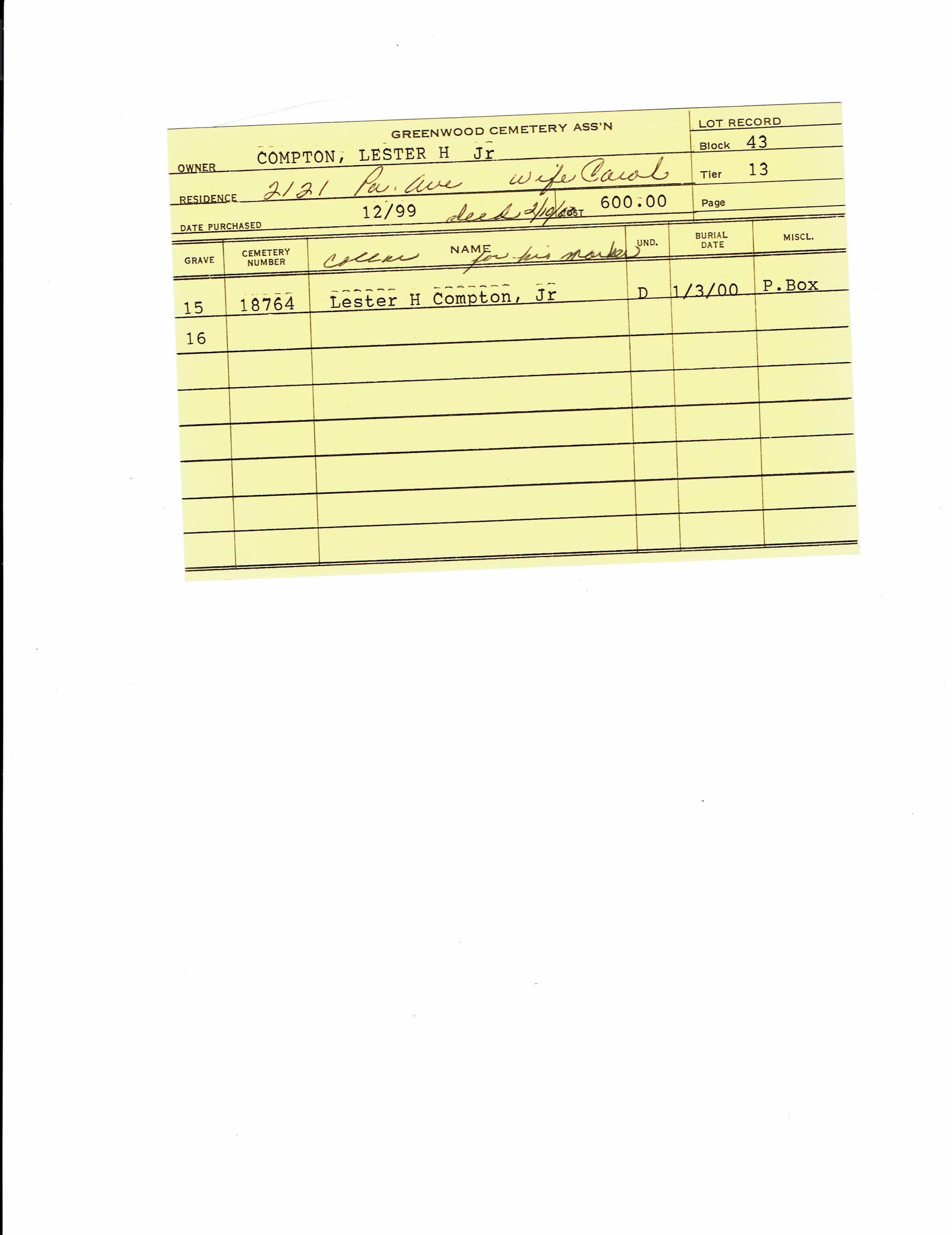 Block 43 V, Tier 26, Lot 1, Grave 36