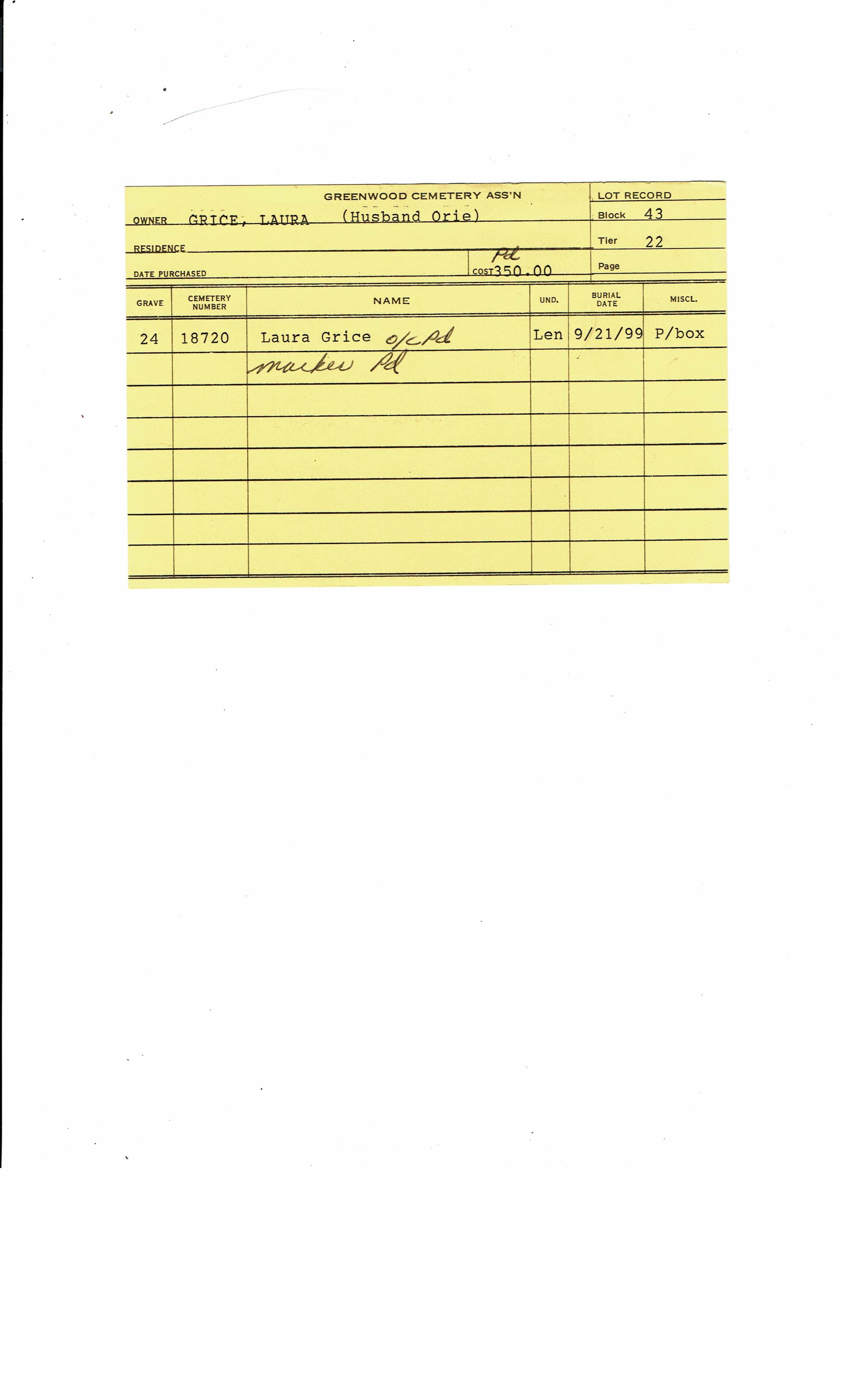 Greenwood Cemetery Association Online Records