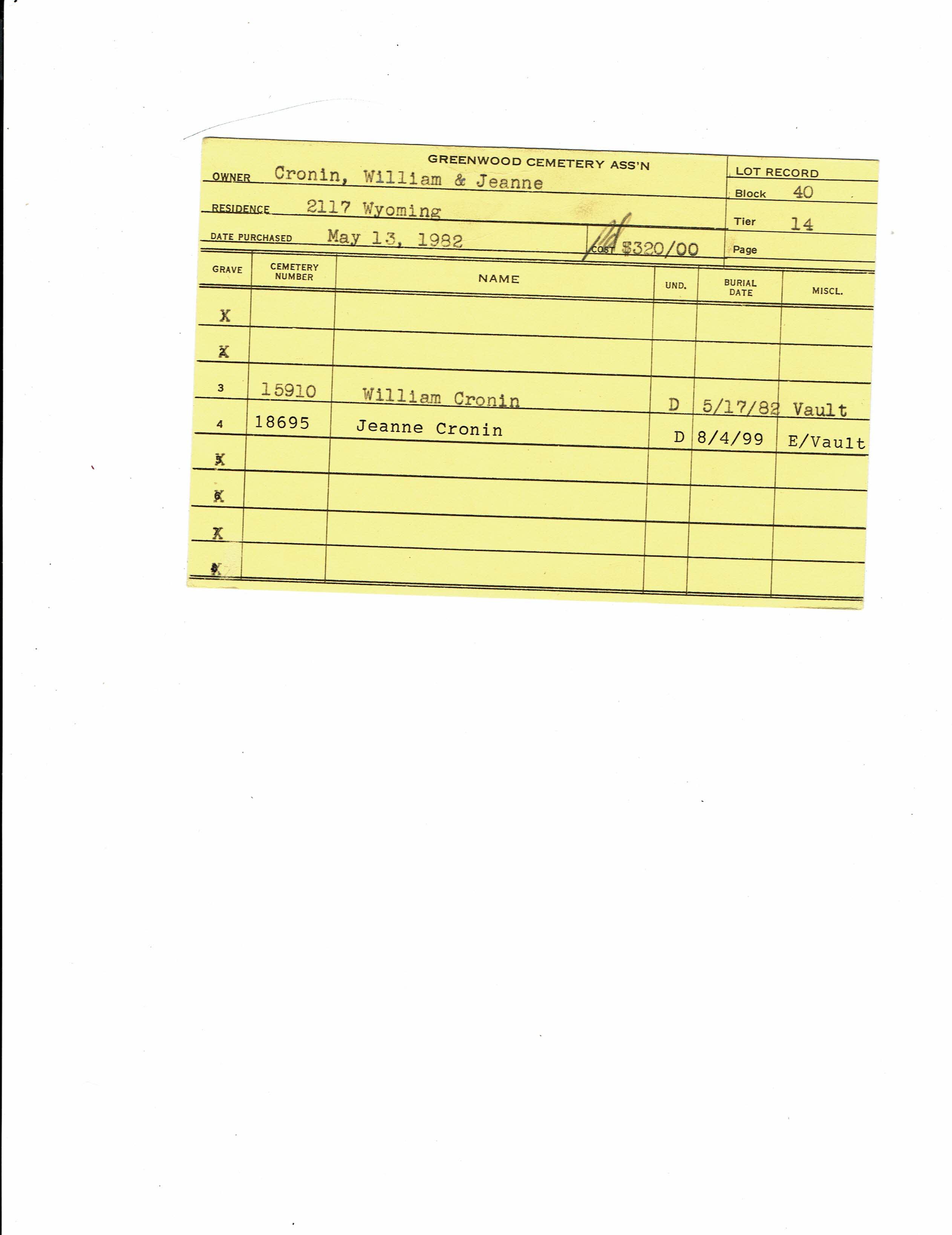 Greenwood Cemetery Association Online Records