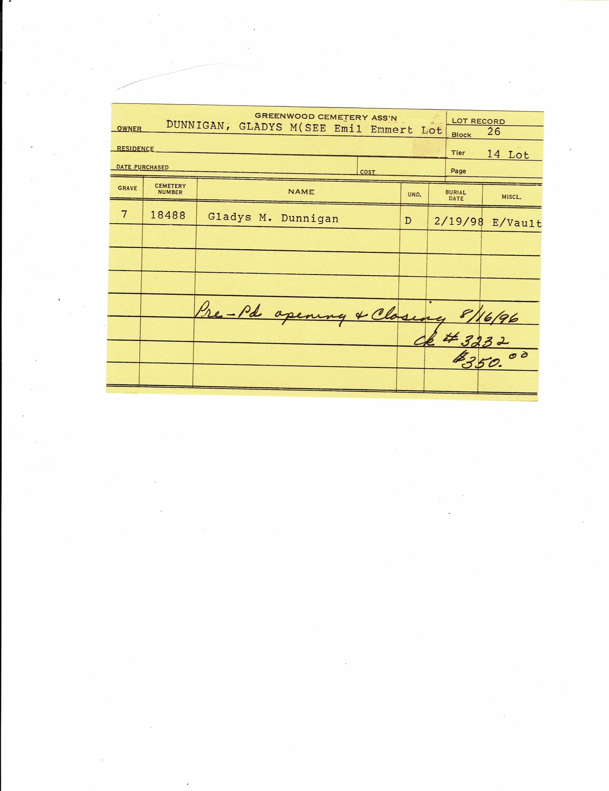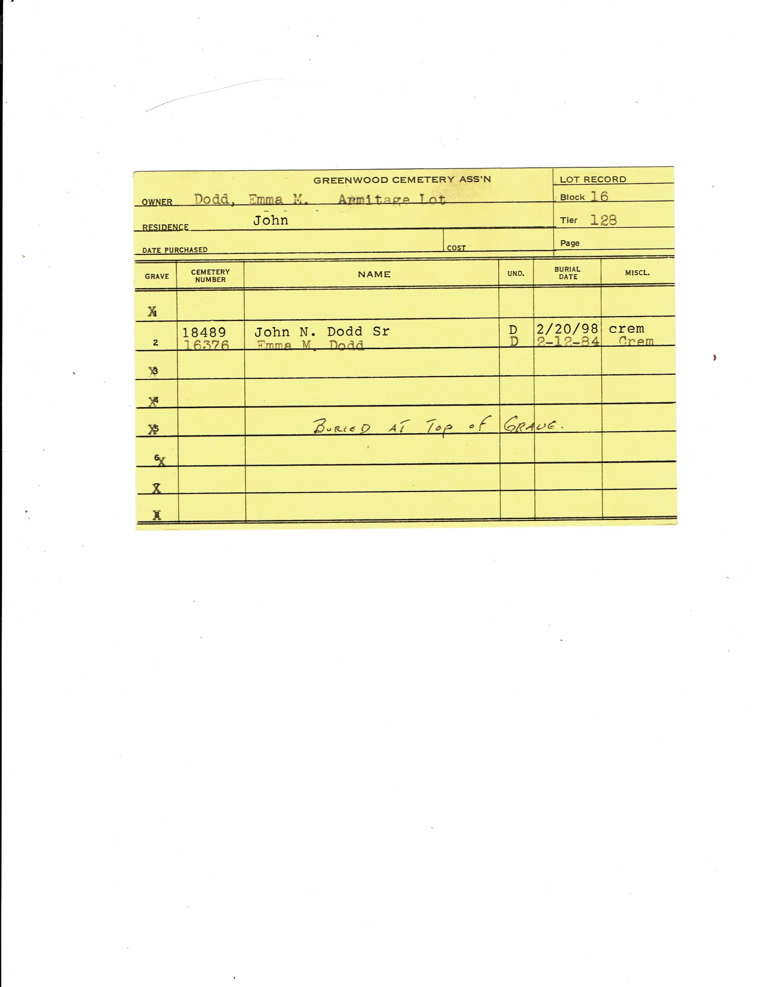 Block 29, Tier 1, Lot 58, Grave 3