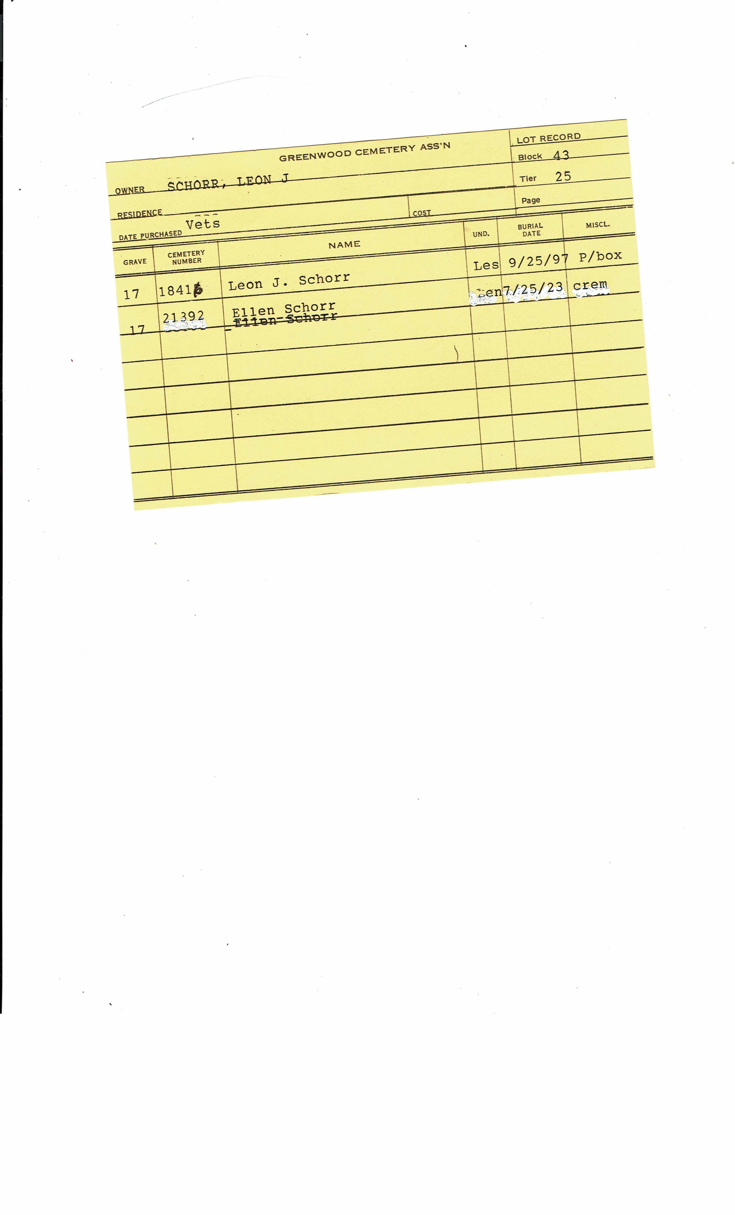 Block 43 V, Tier 1, Lot 25, Grave 18