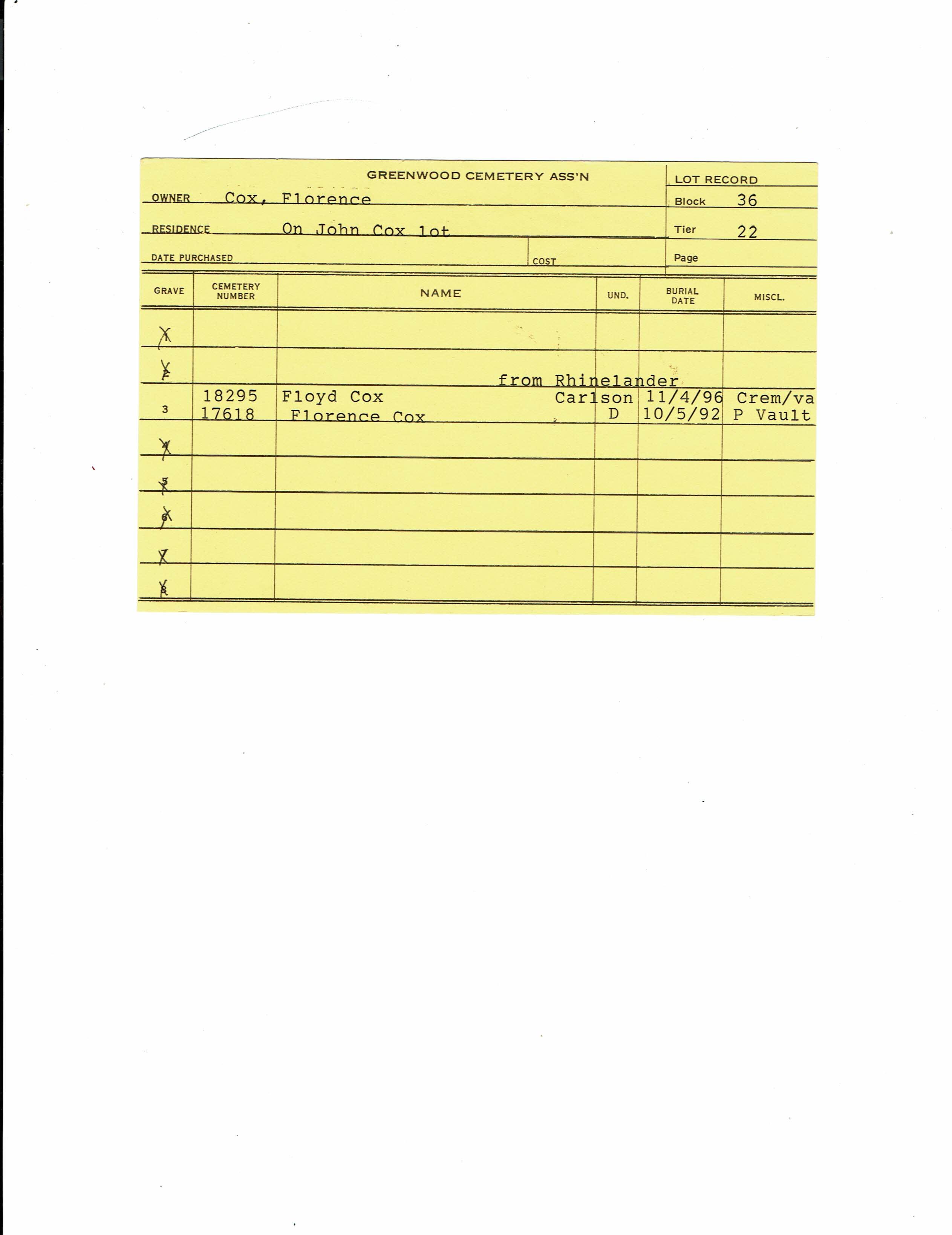 Greenwood Cemetery Association Online Records