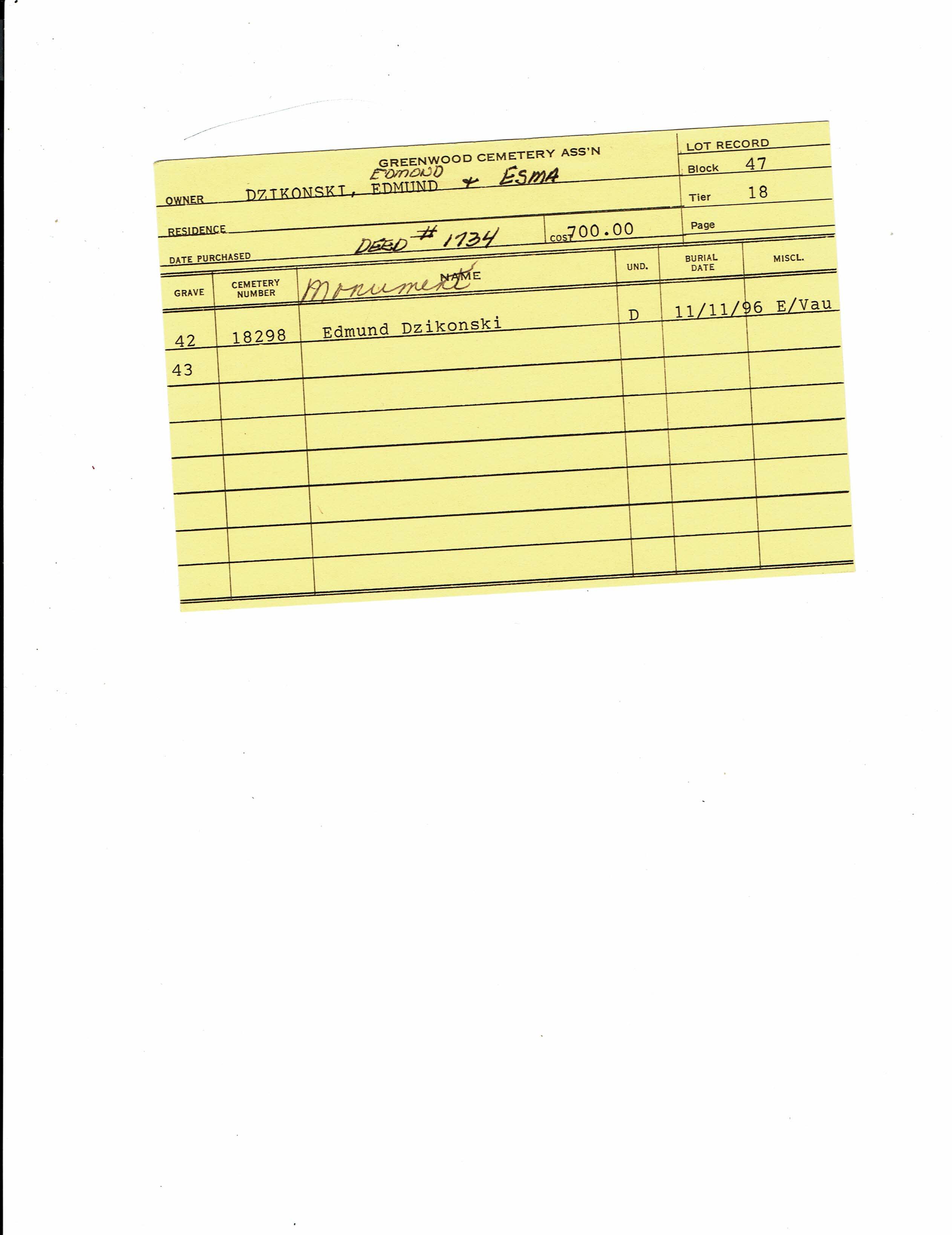 Block 33, Tier 07, Lot 1, Grave 40