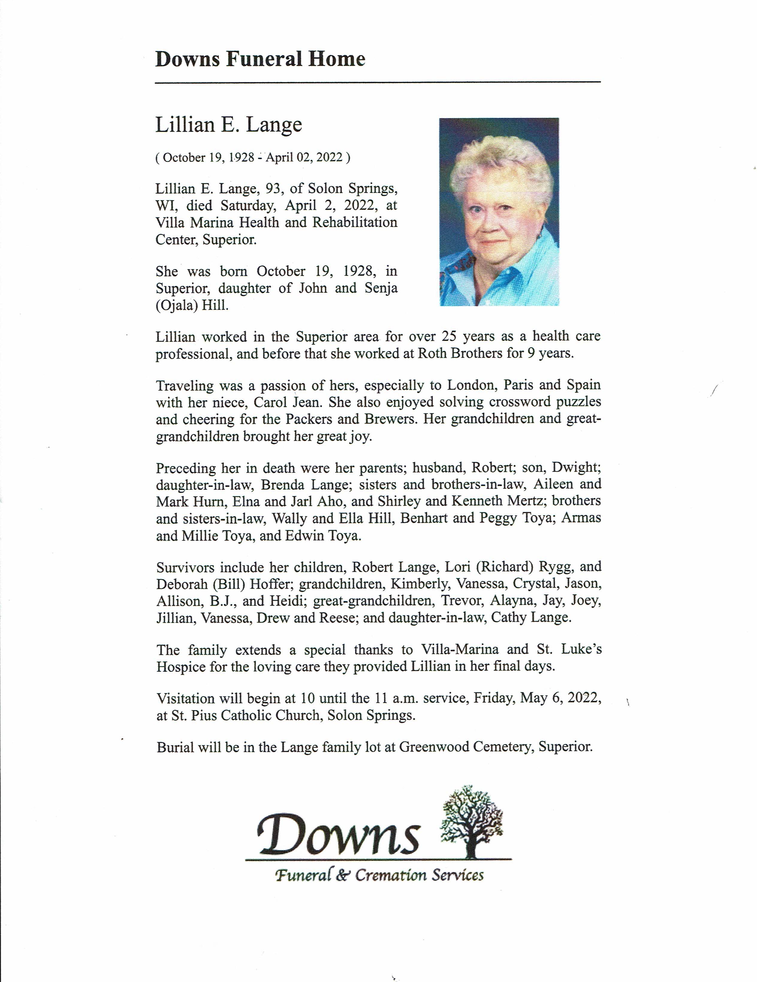 Lillian E Lange