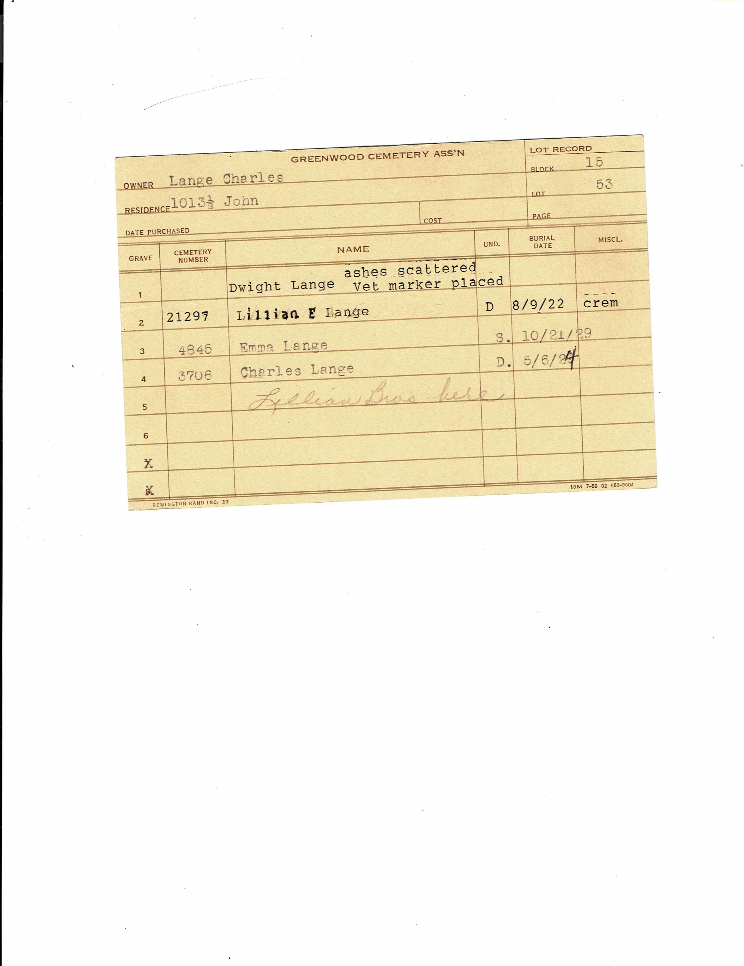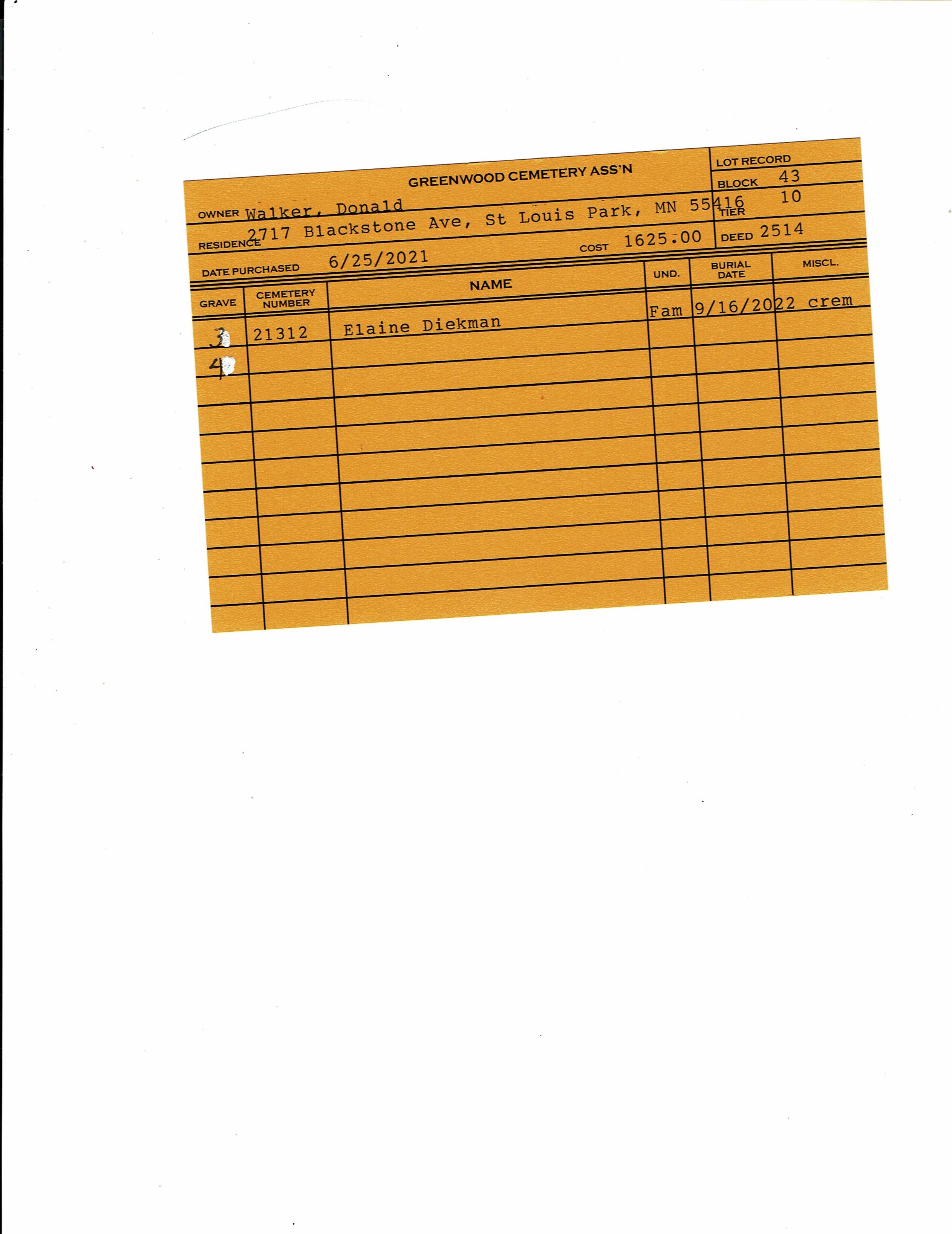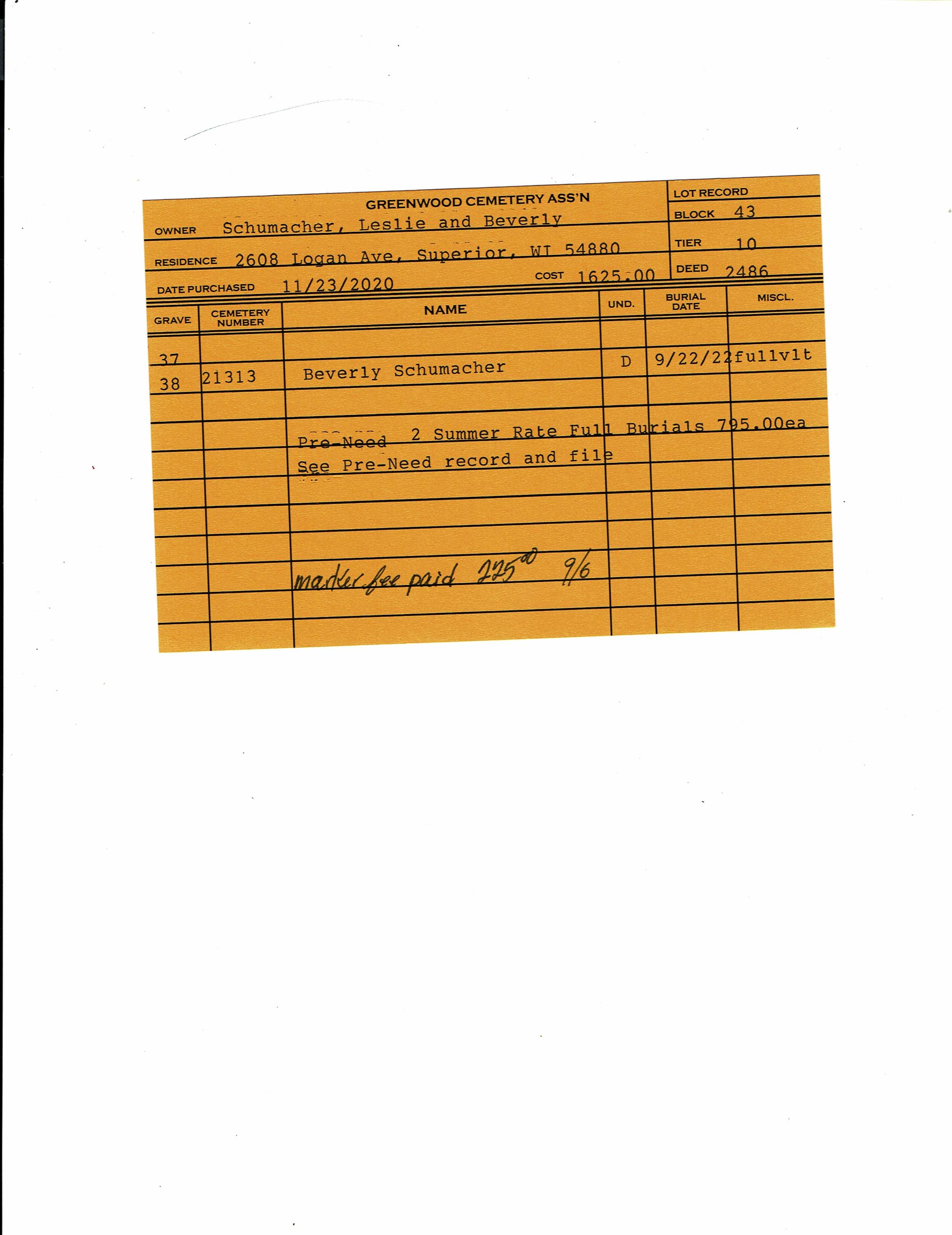 Block 43, Lot 10, Grave 38