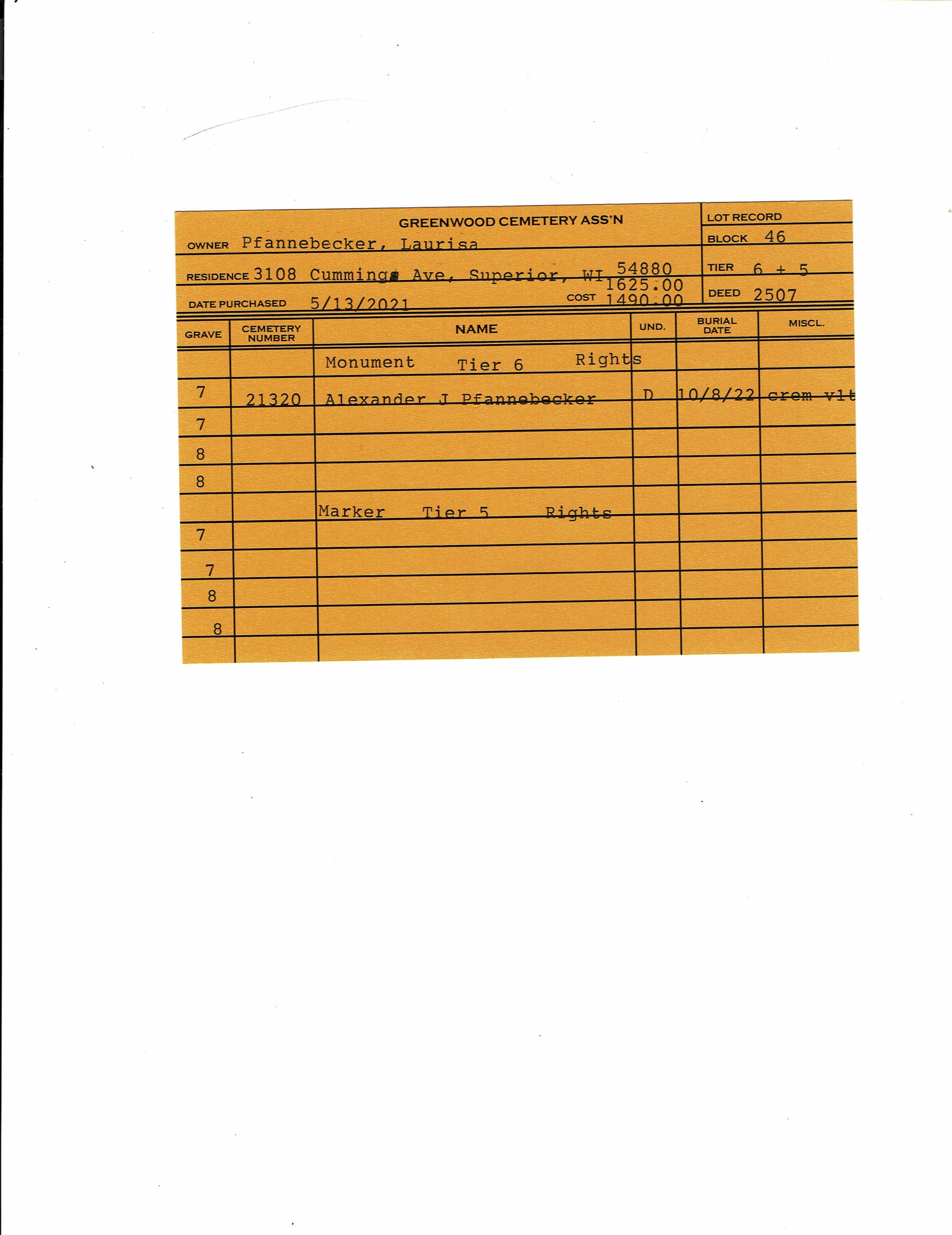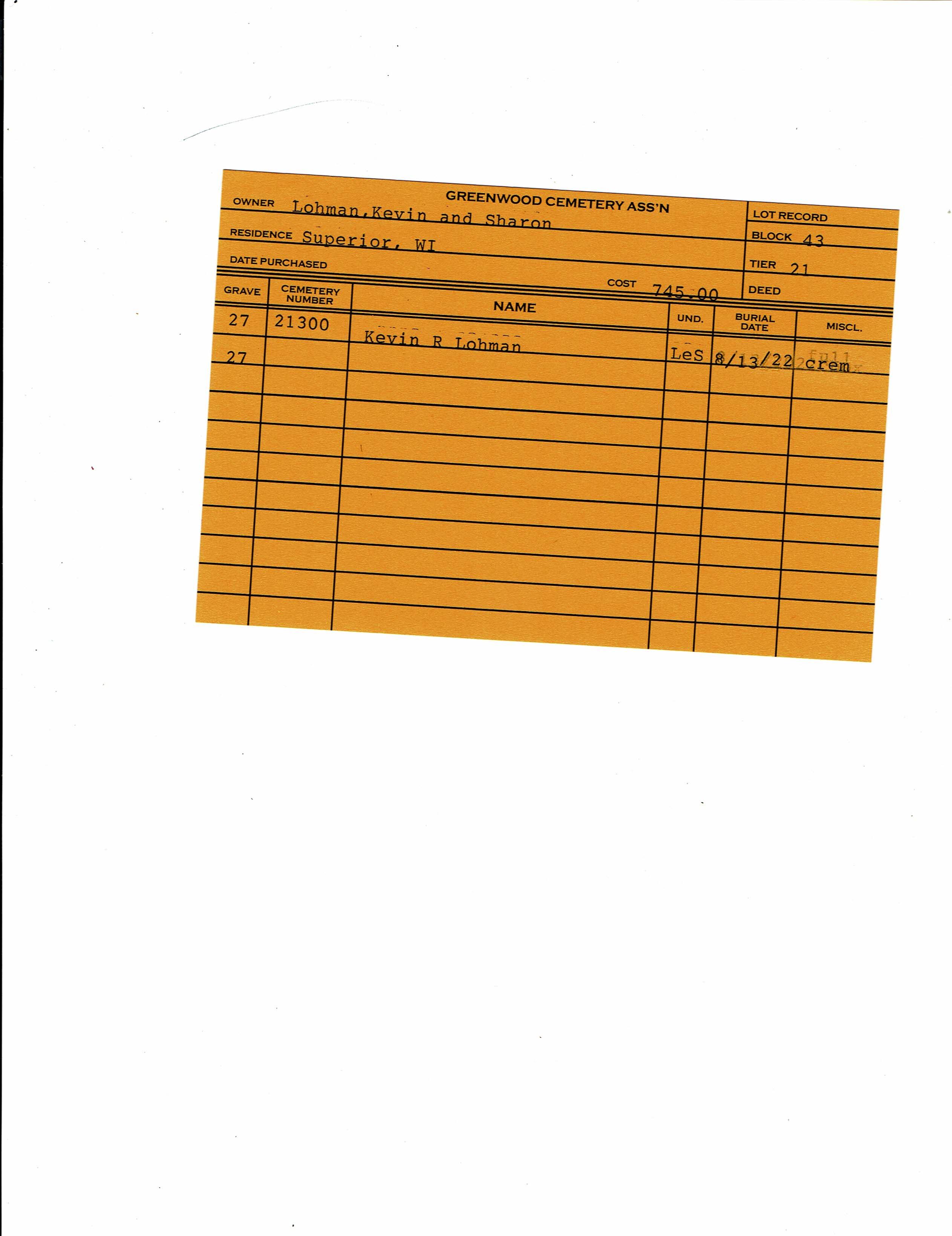 Block 43, Tier 21, Grave 27