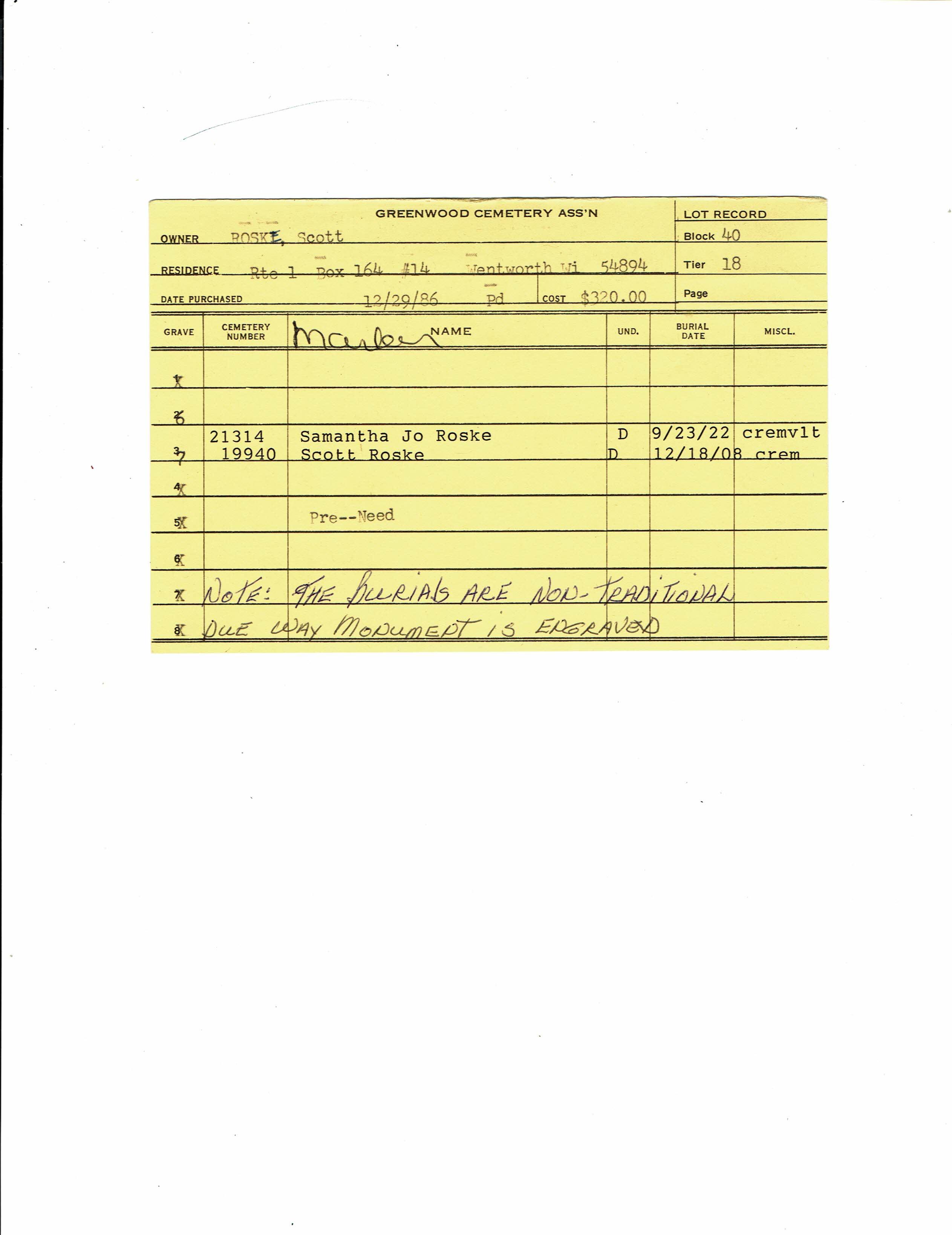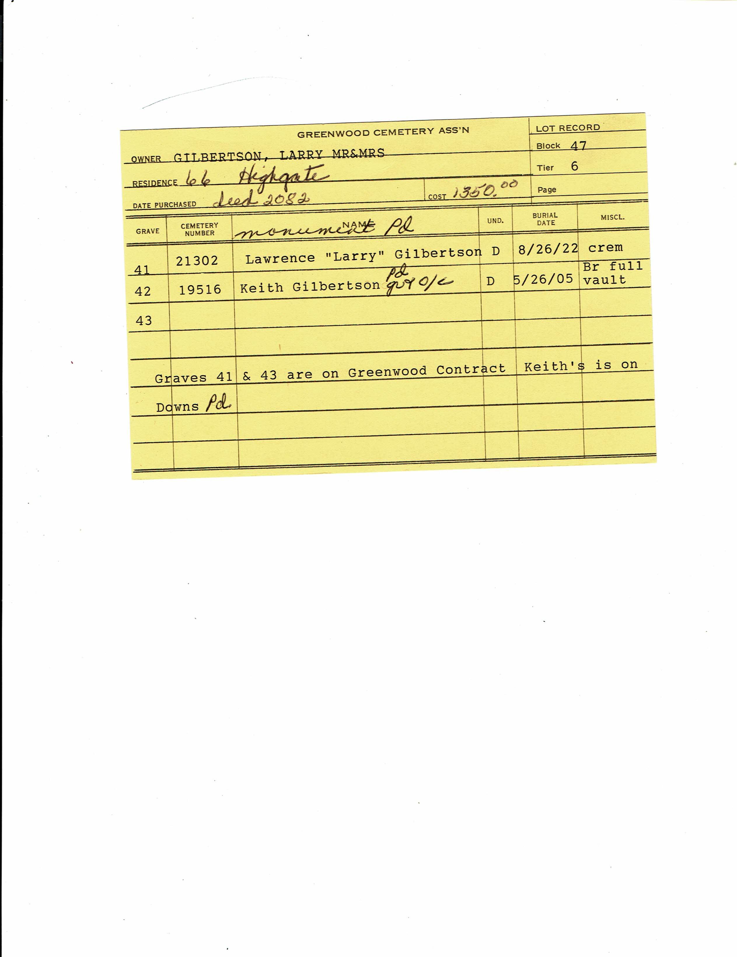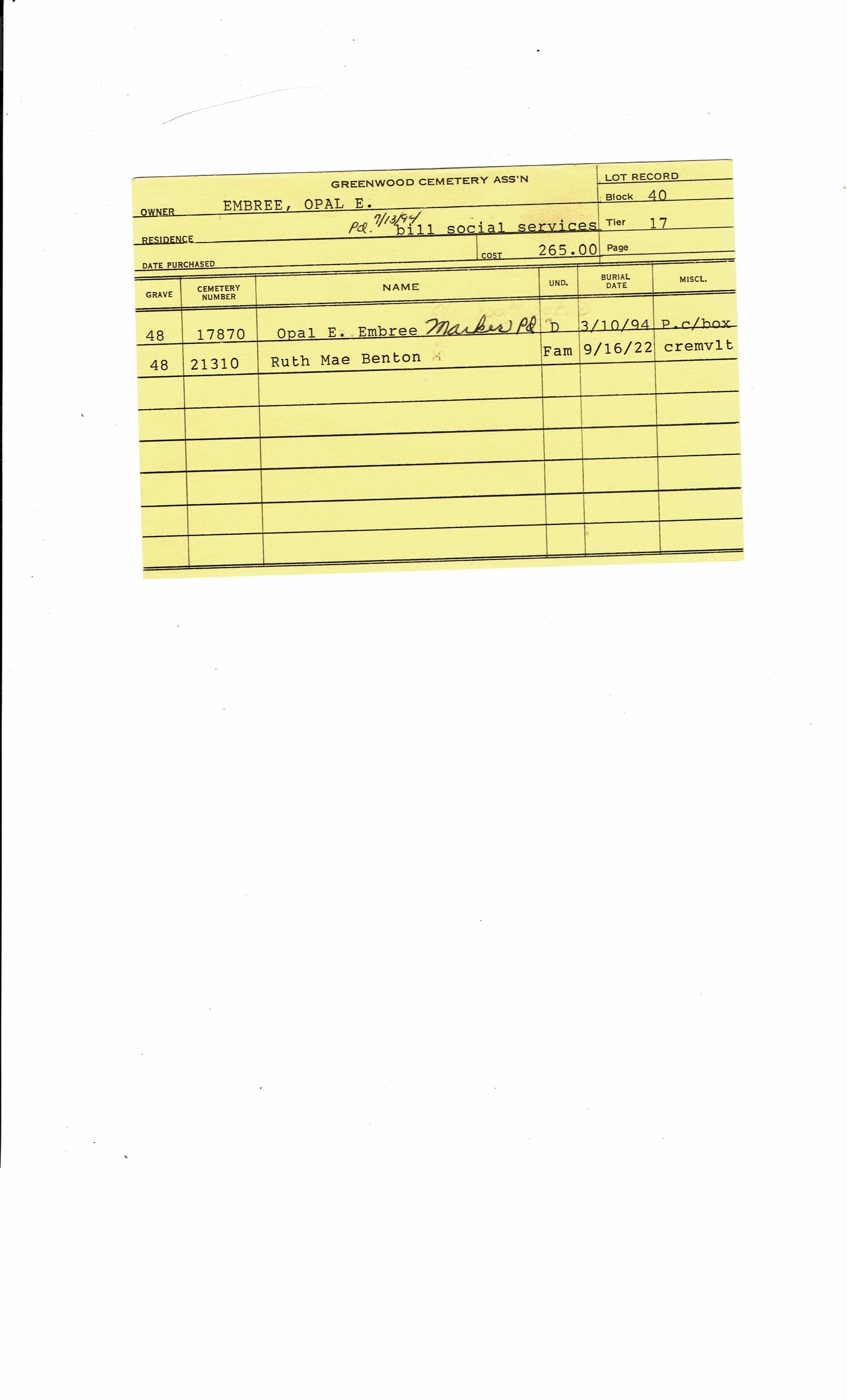 Block 40, Lot 17, Grave 48