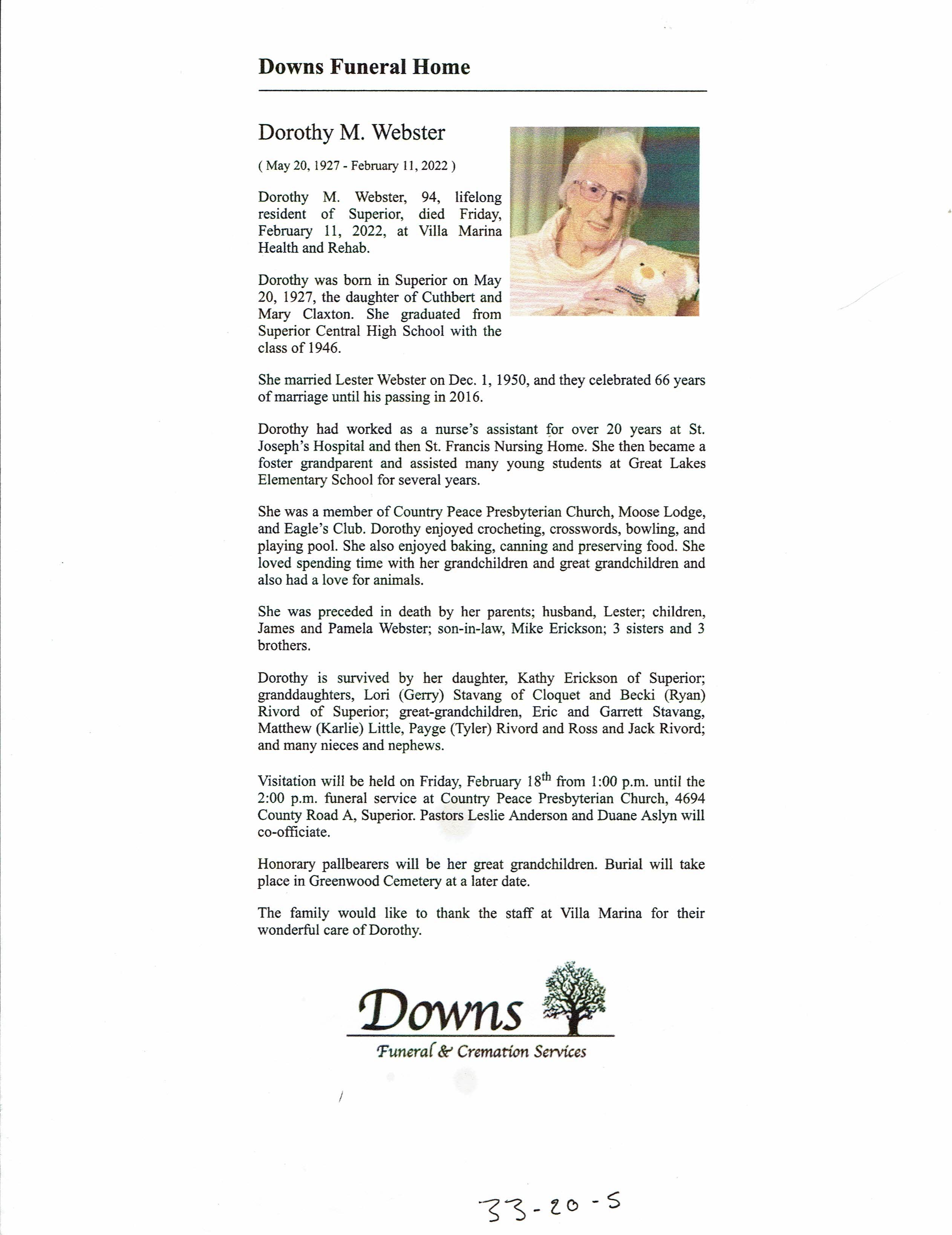 Dorothy M Webster