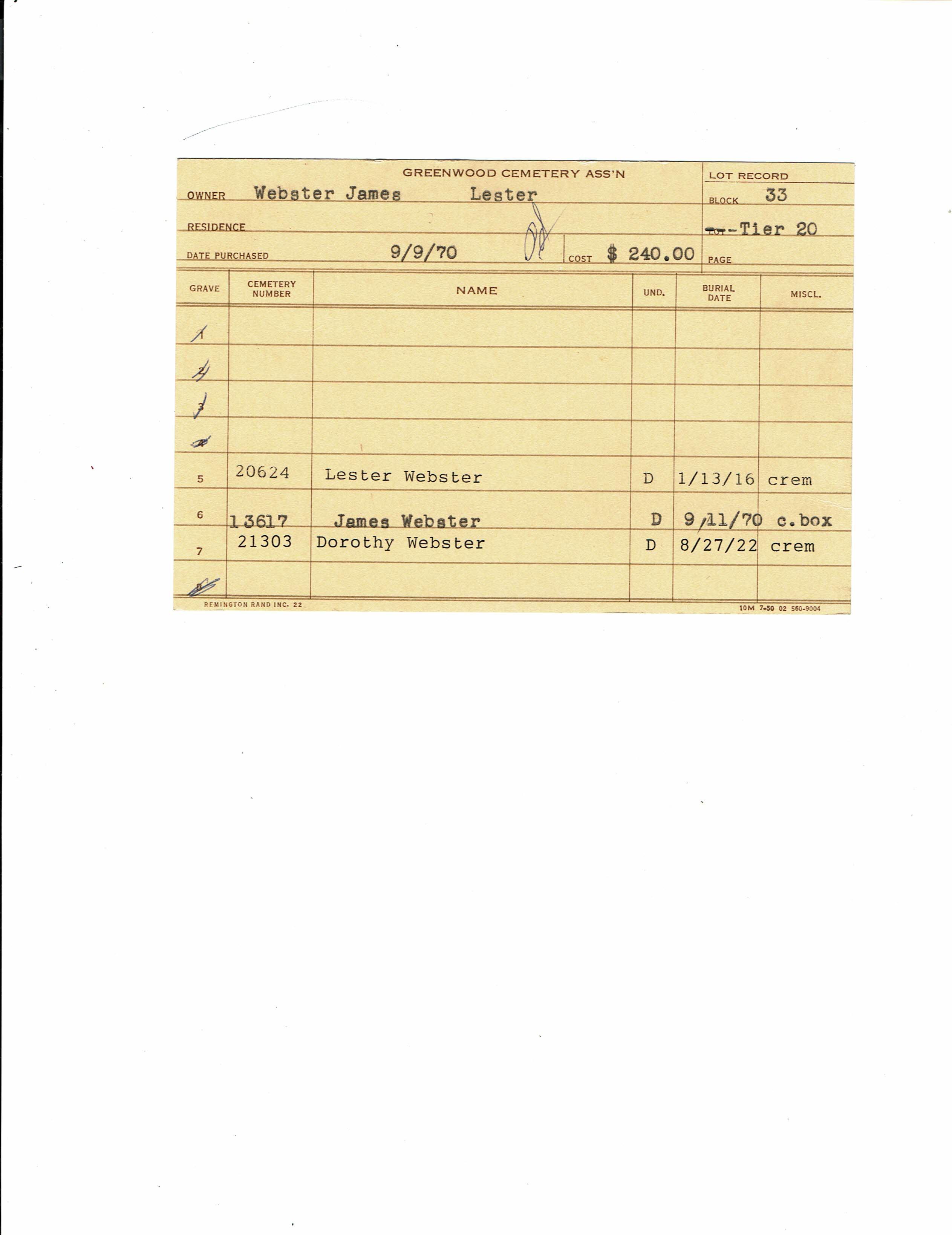 Block 33, Tier 20, Grave 7
