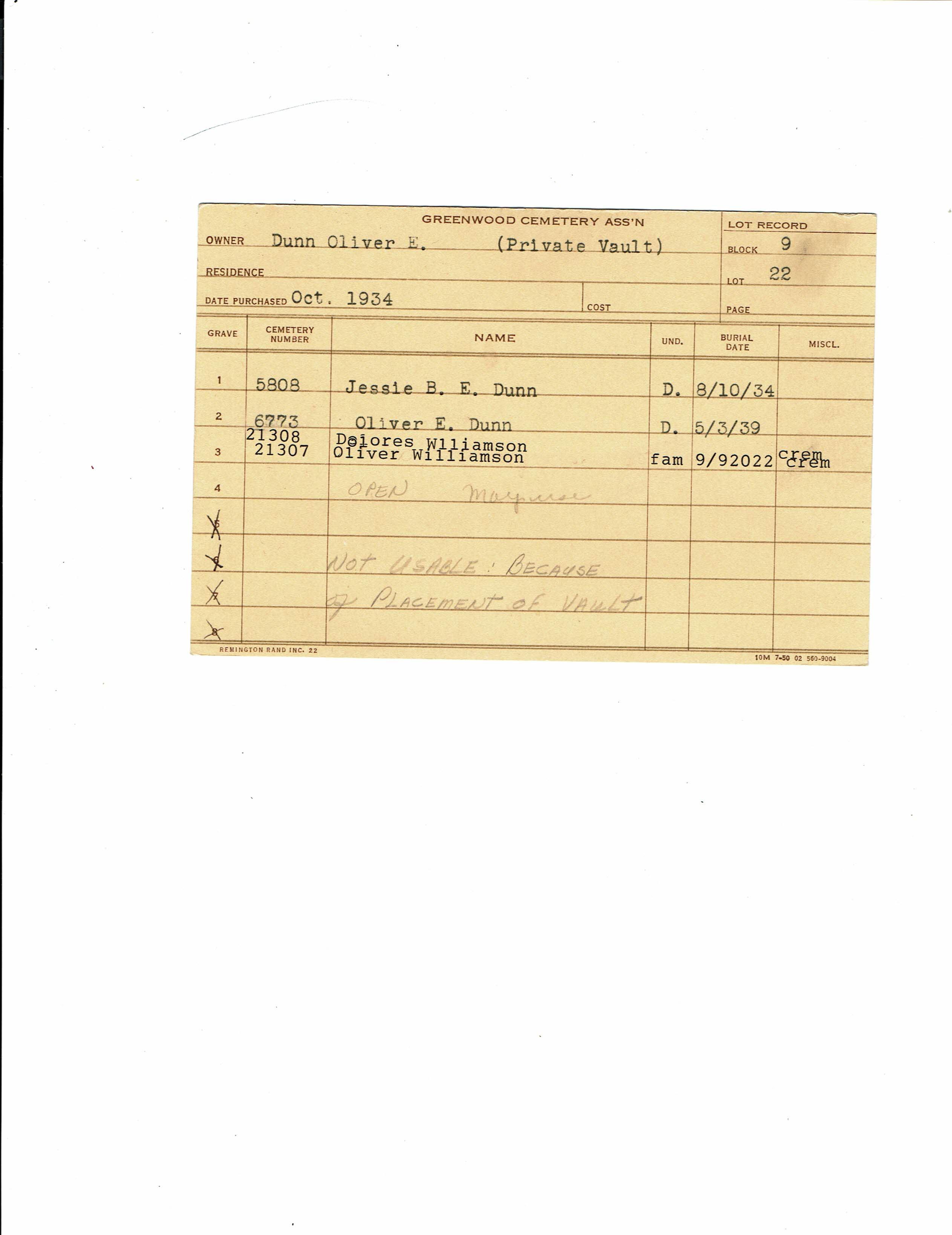 Block 9, Lot 22, Grave 3