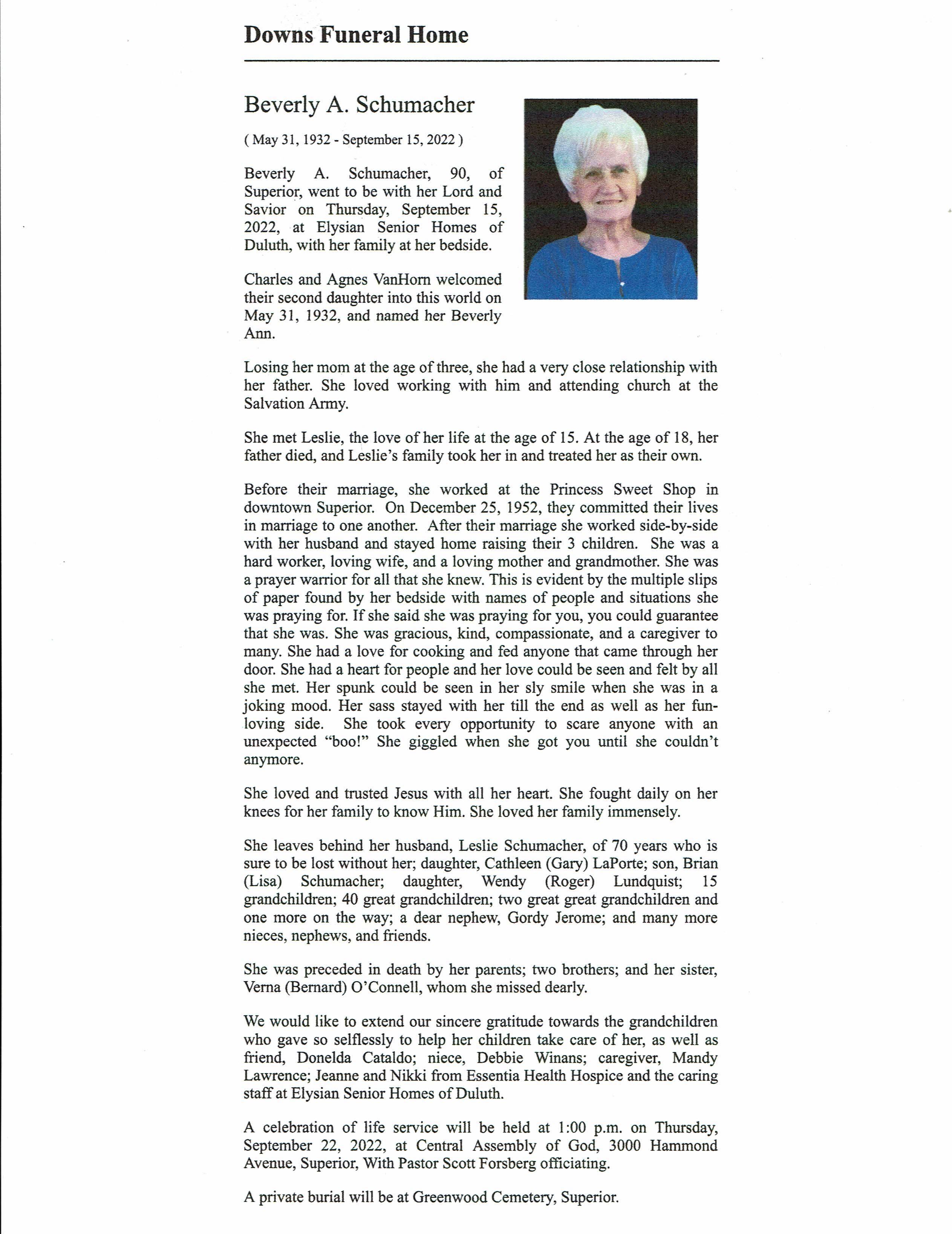 Beverly A Schumacher