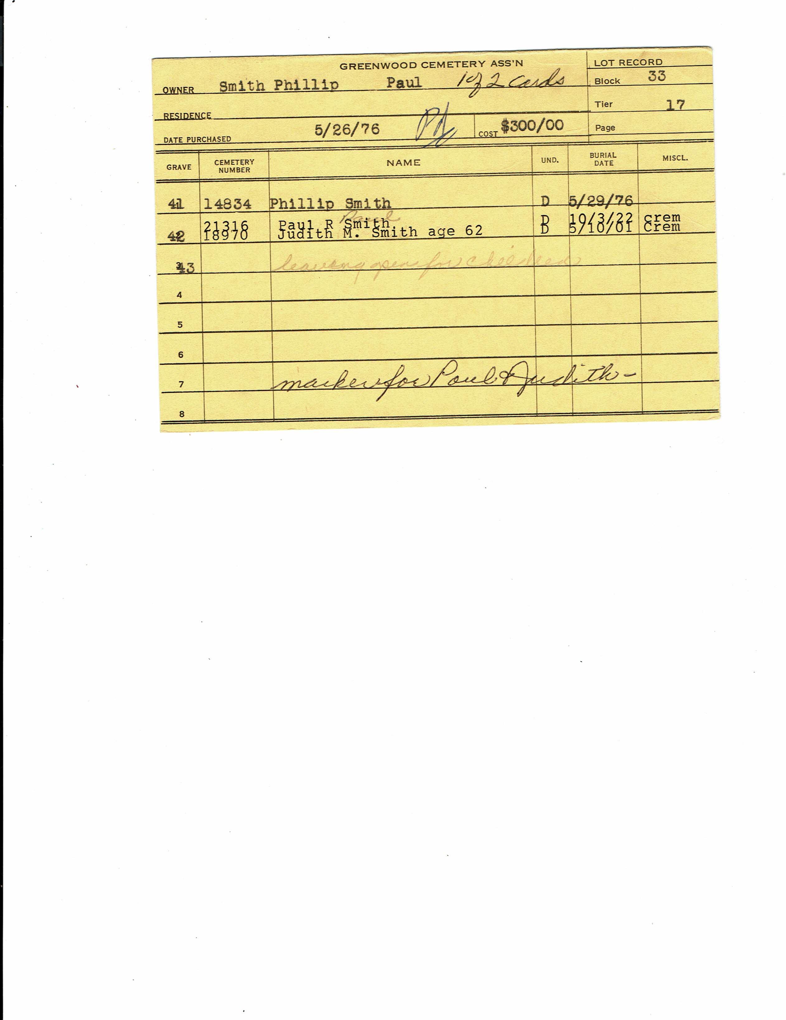 Block 33, Tier 17, Grave 42