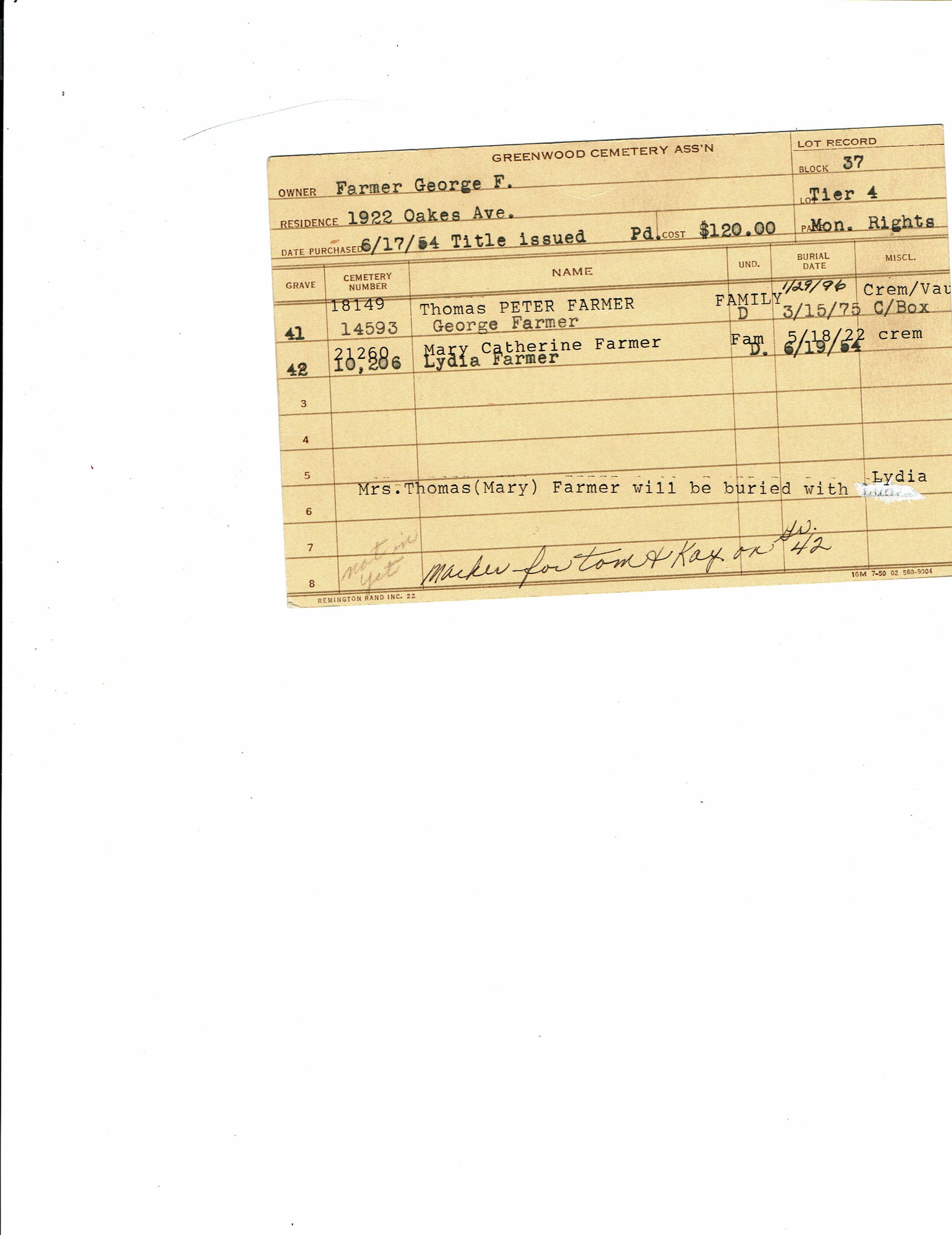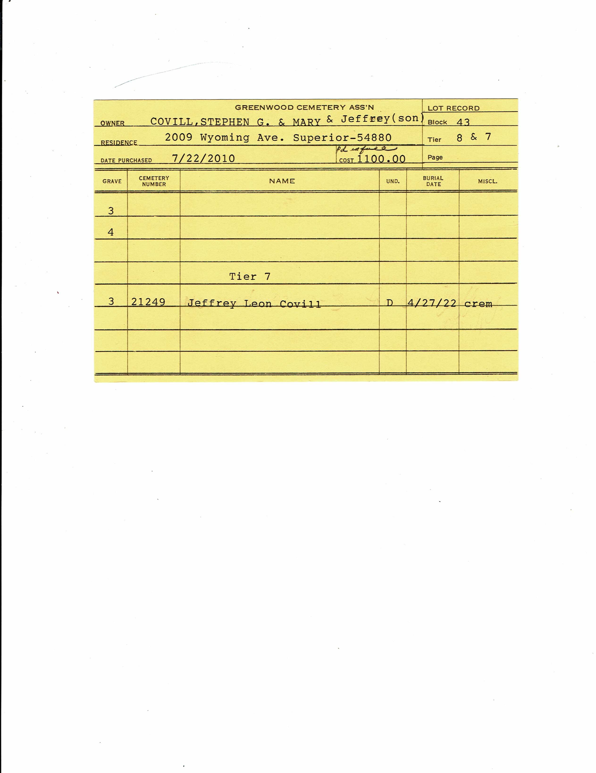 Block 43, Tier 31, Grave 22