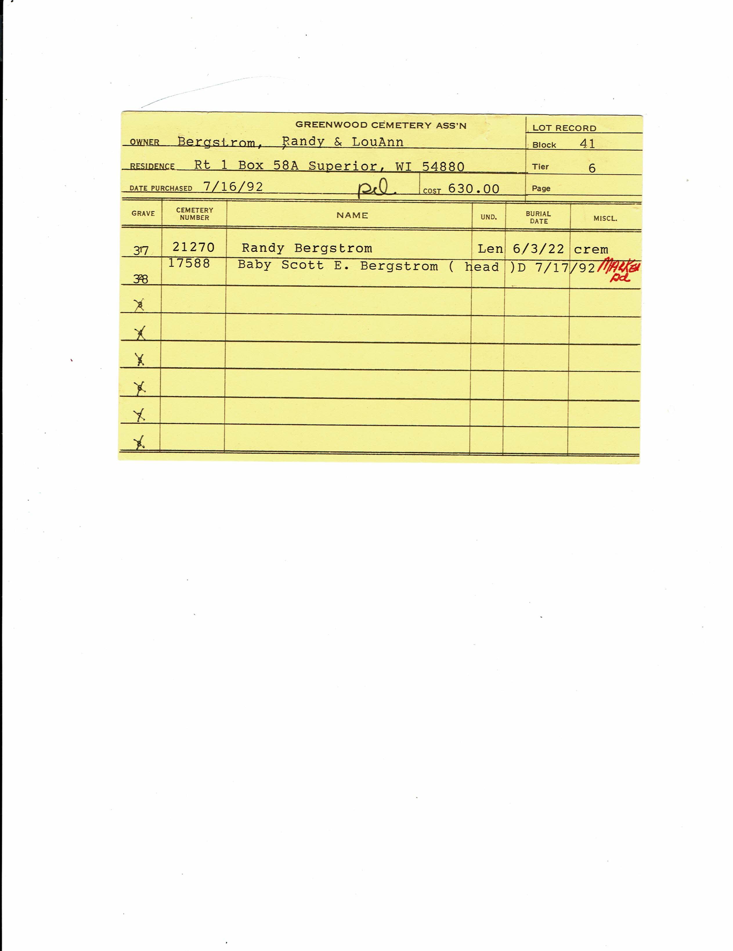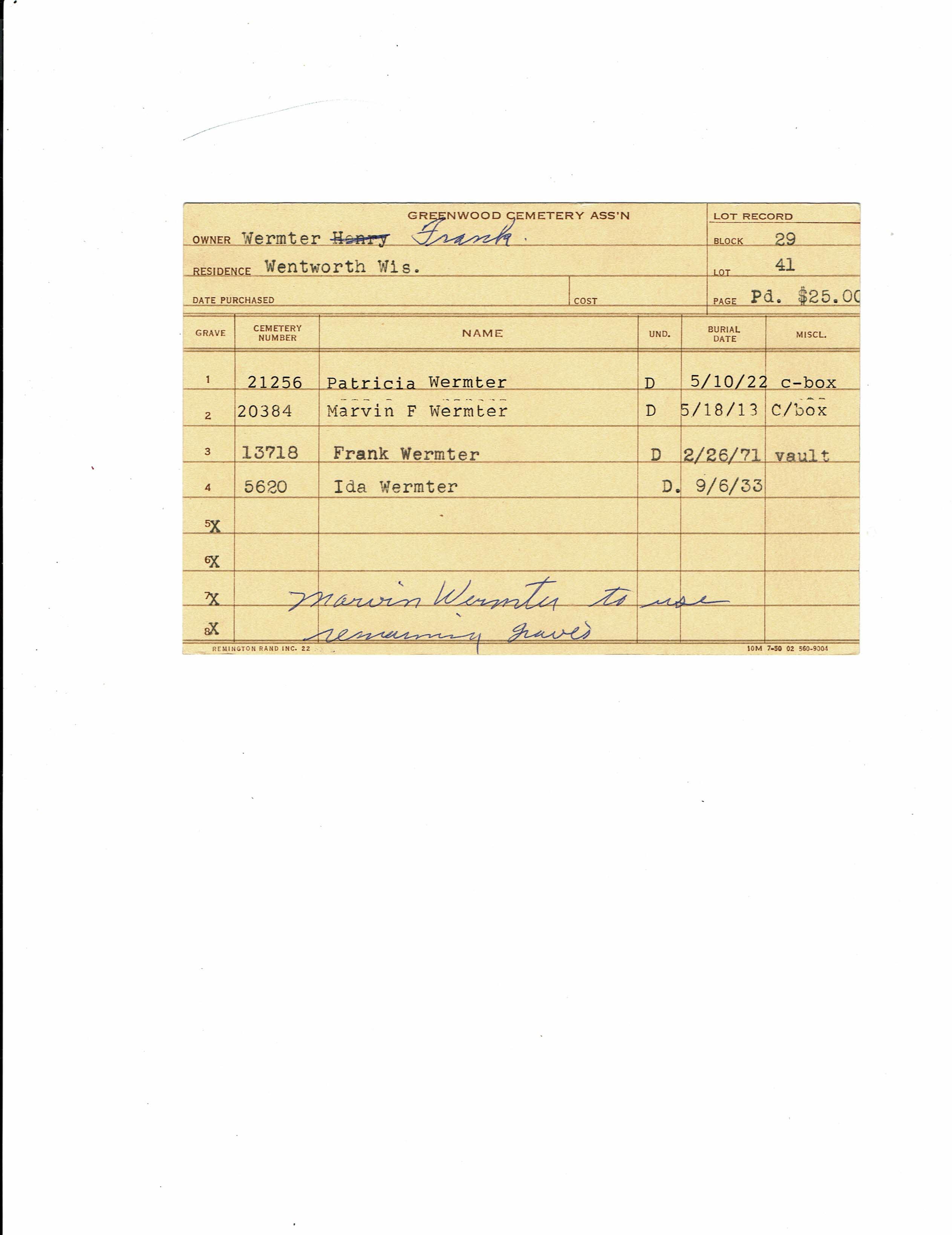Block 29, Lot 41, Grave 1