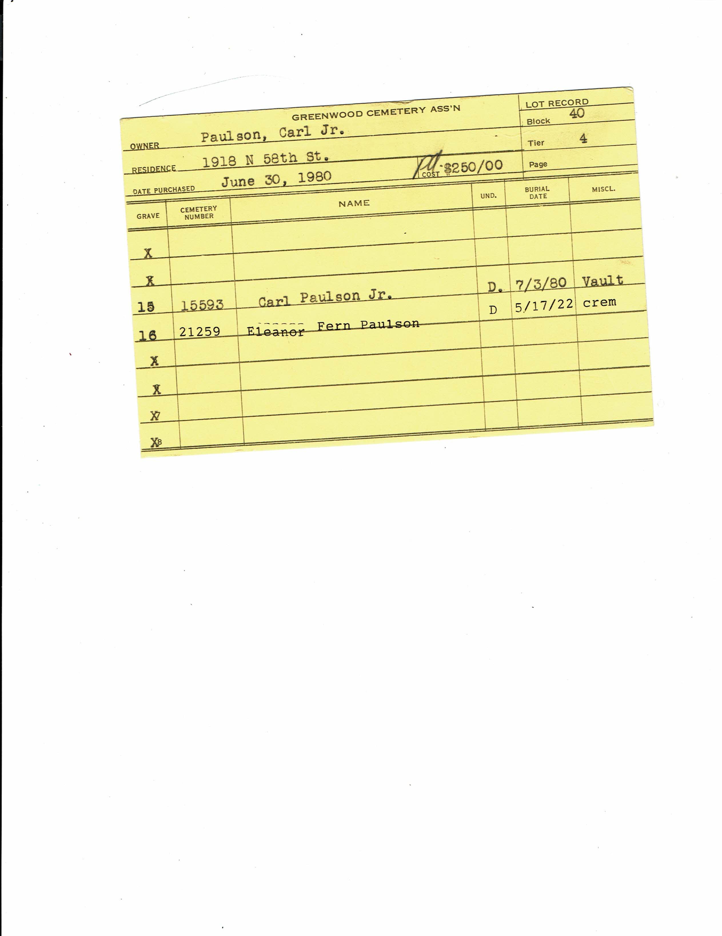 Block 40, Tier 4, Grave 16
