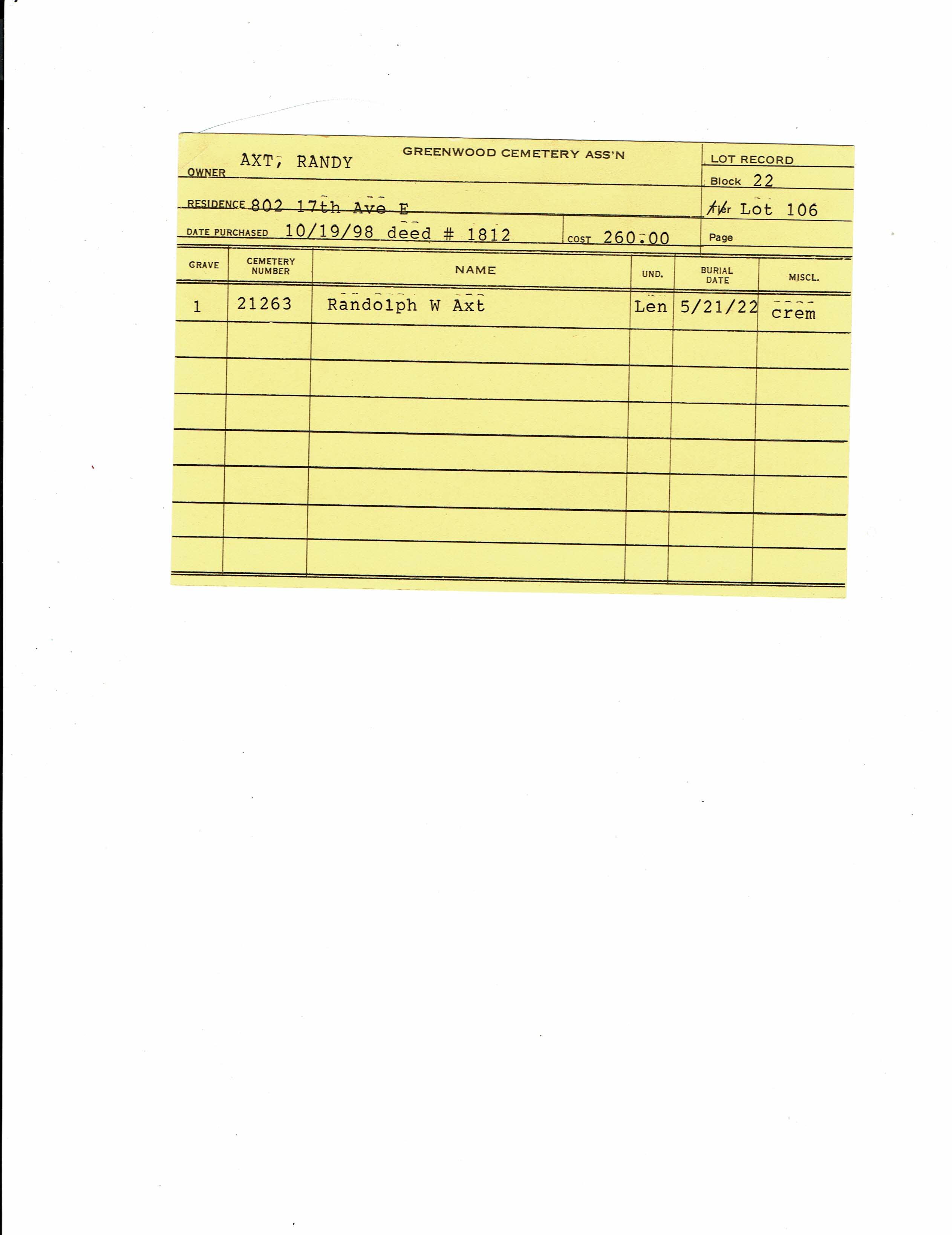Block 22, Lot 106, Grave 1