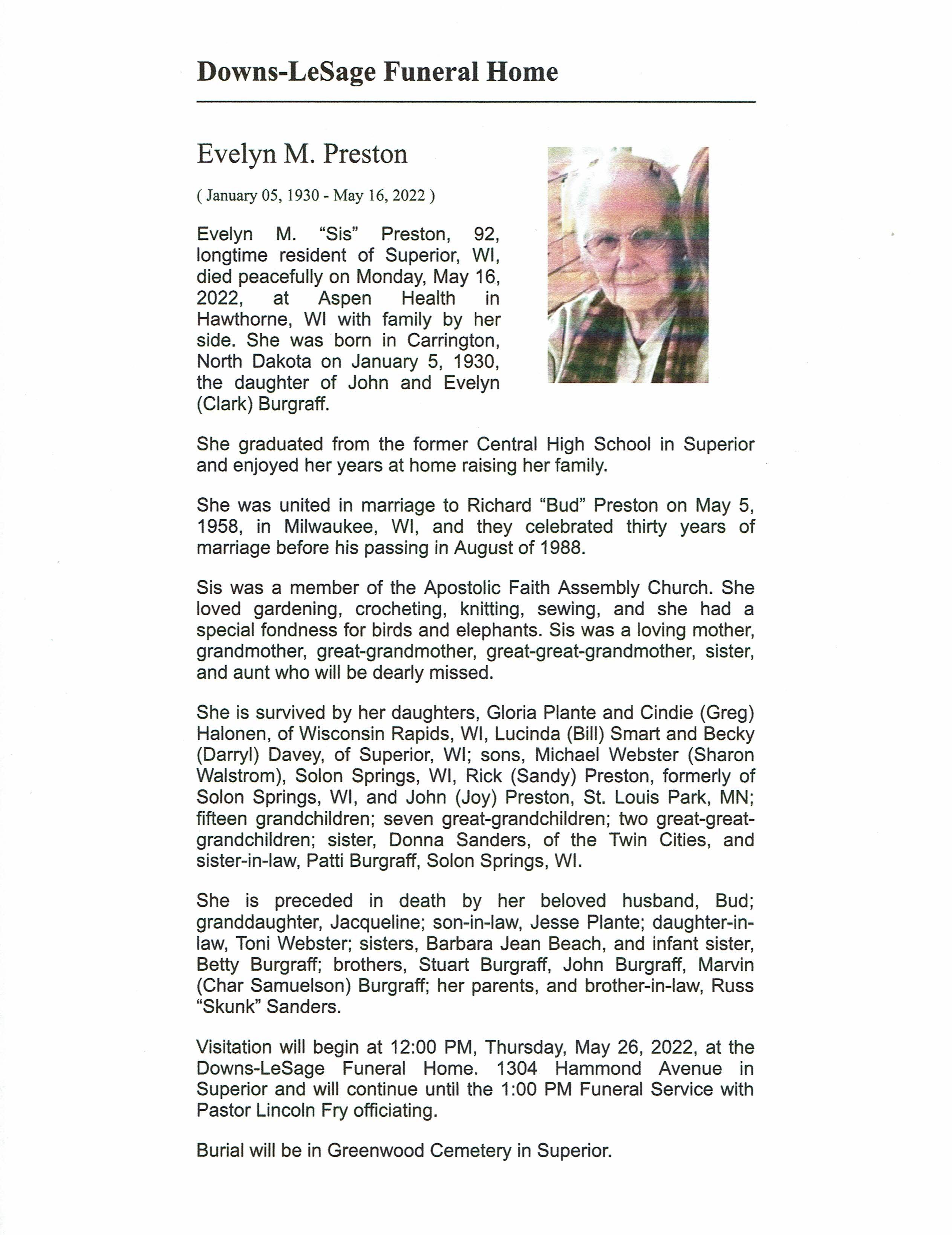 Evelyn M Preston