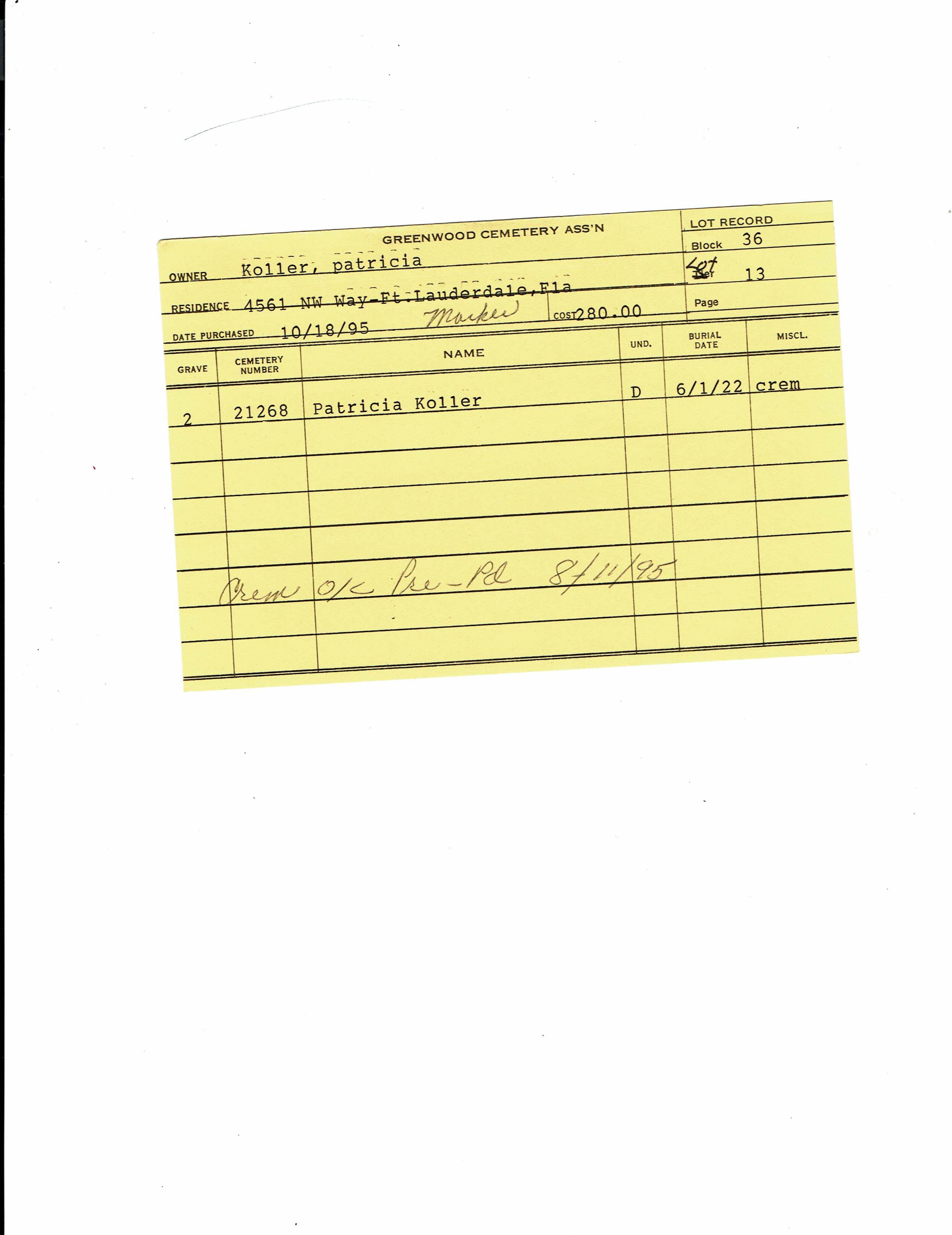 Block 36, Lot 13, Grave 2