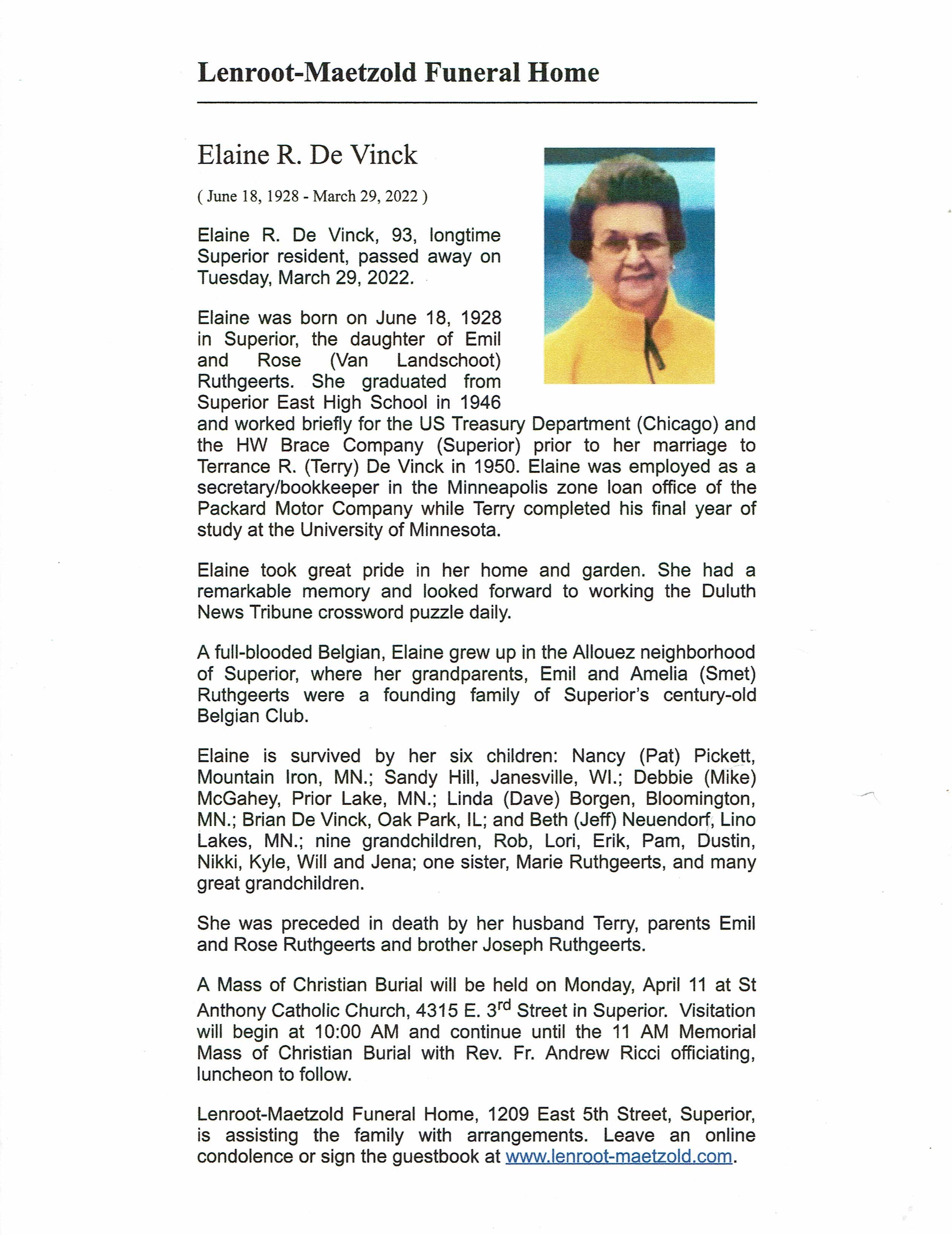 Elaine R DeVinck