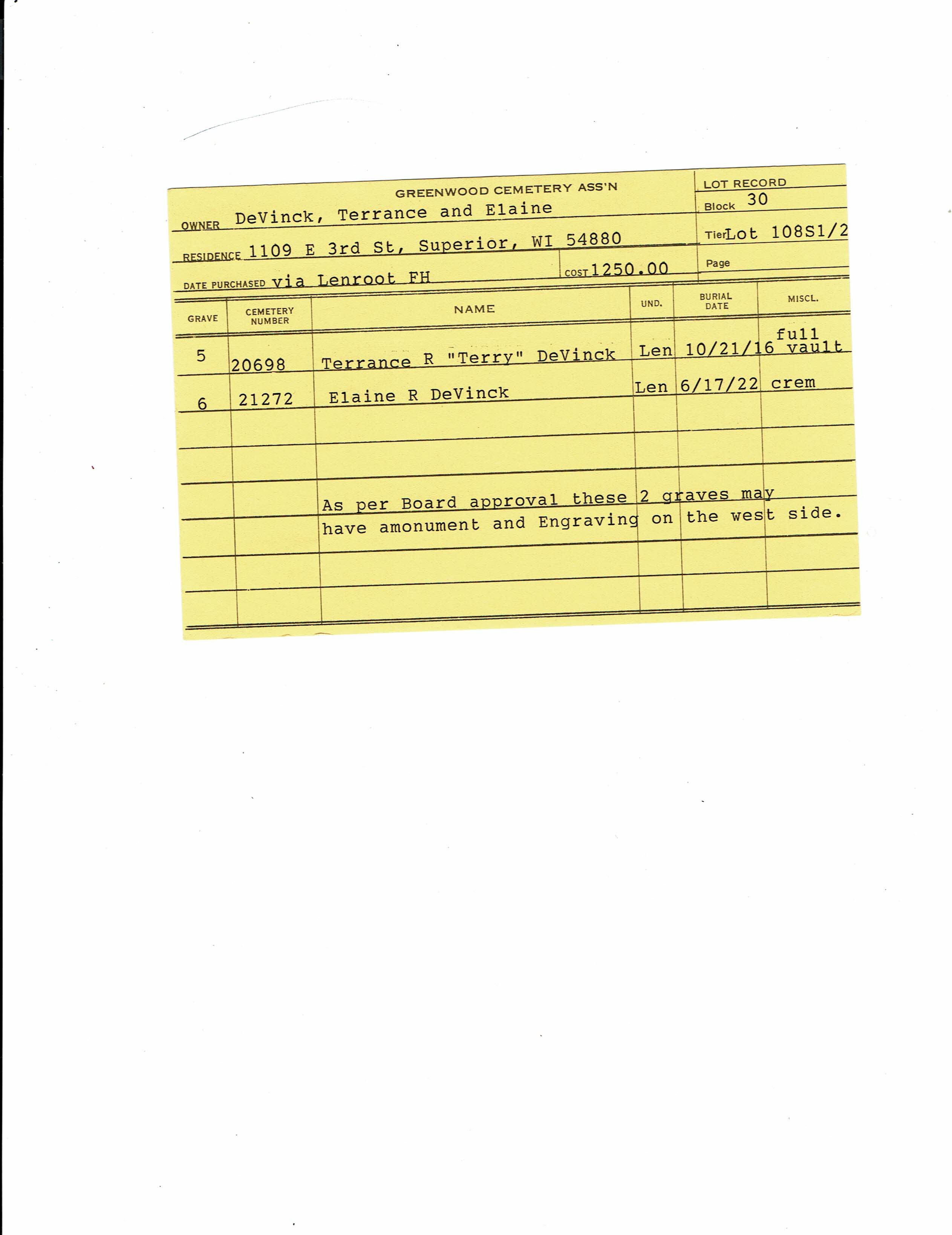 Block 30, Lot 108, Grave 6