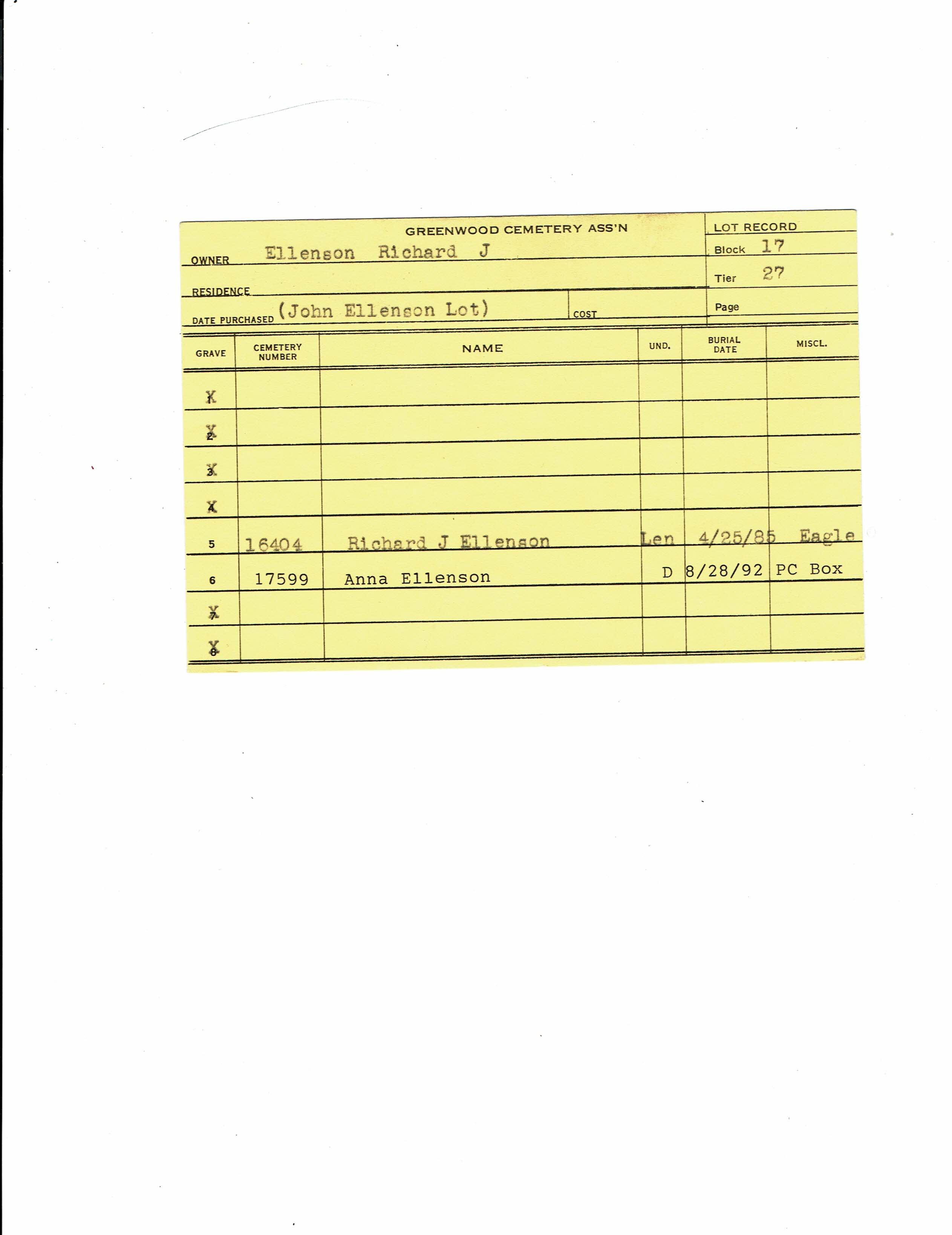 Greenwood Cemetery Association Online Records