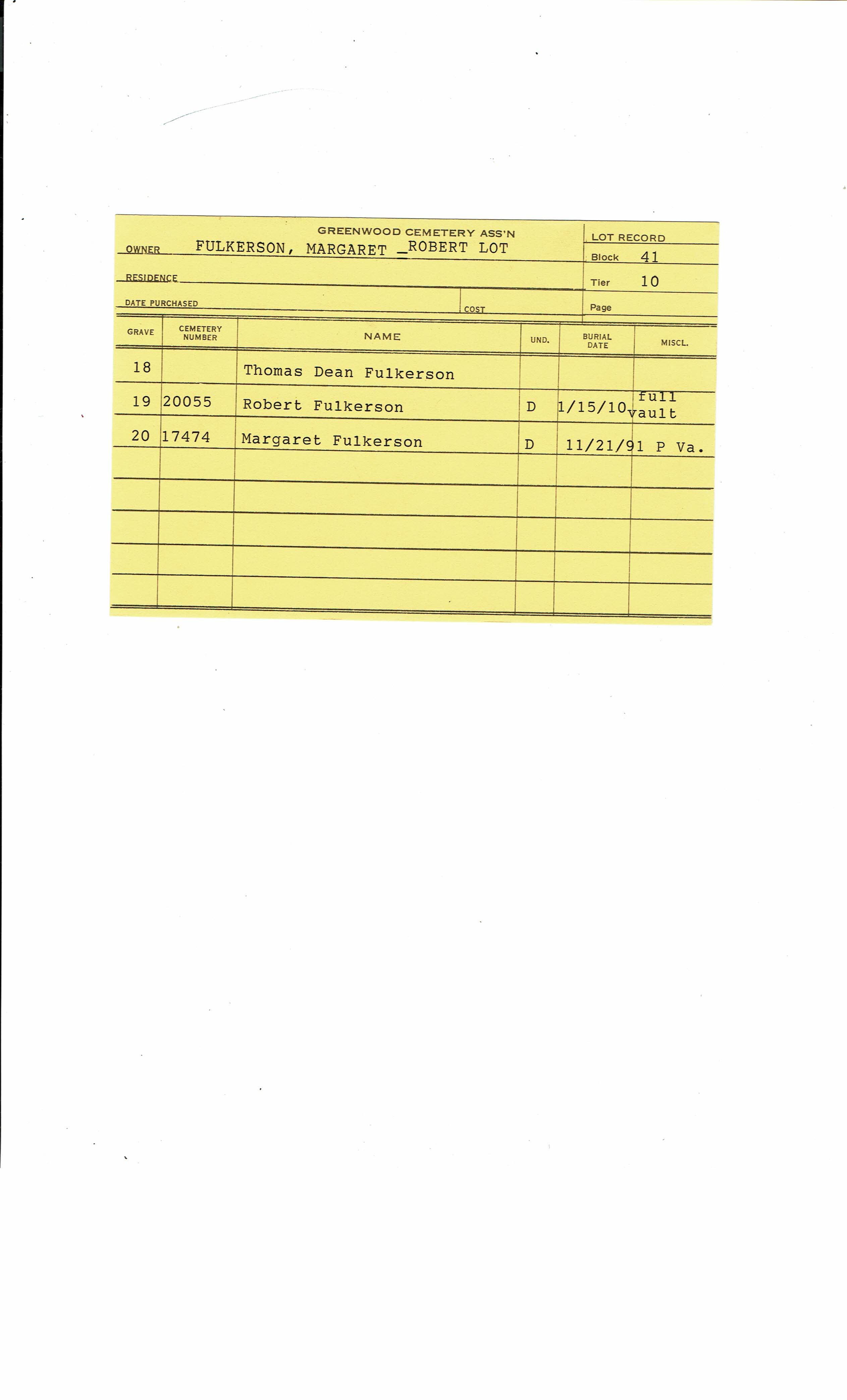 Block 41, Tier 10, Grave 20