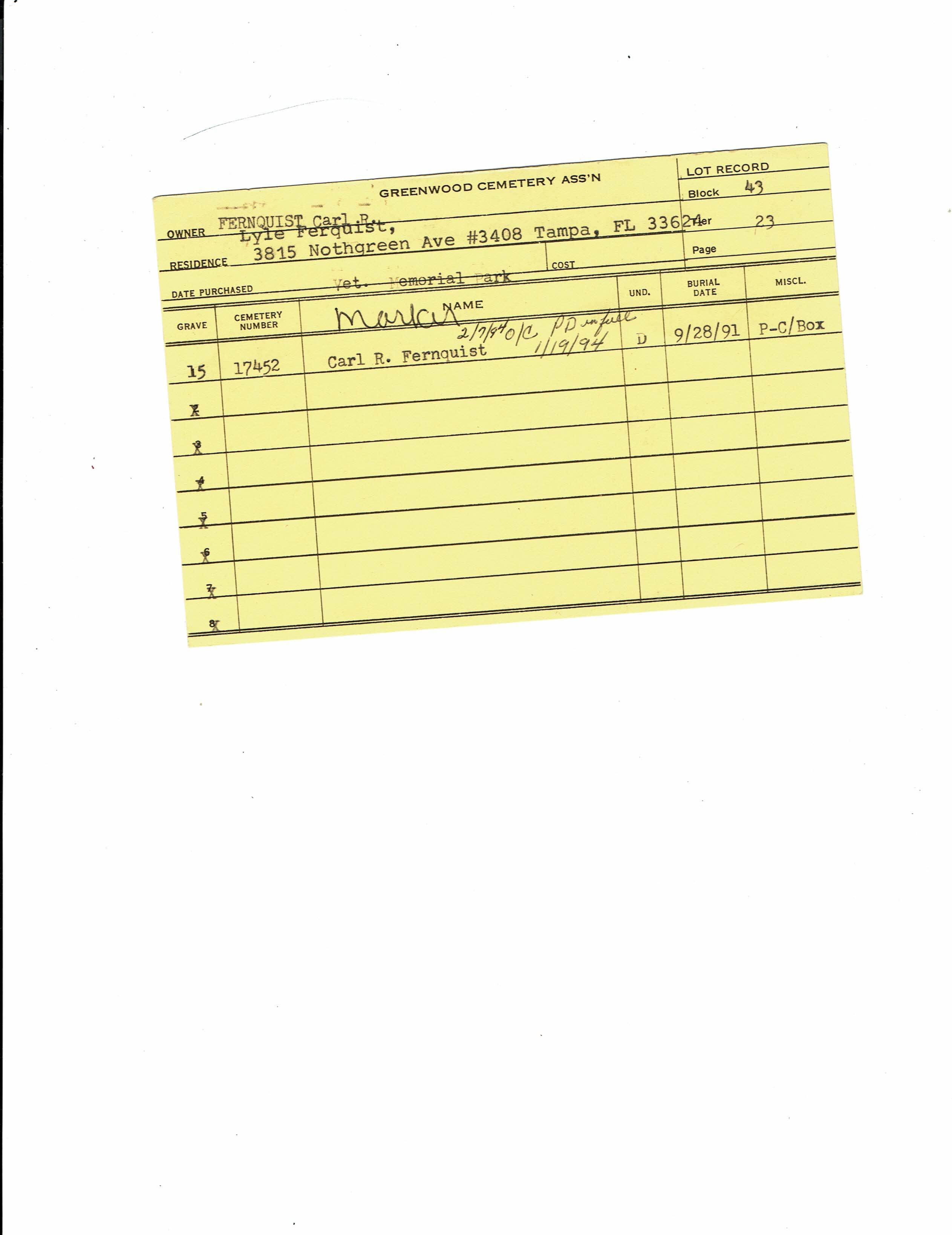Greenwood Cemetery Association Online Records