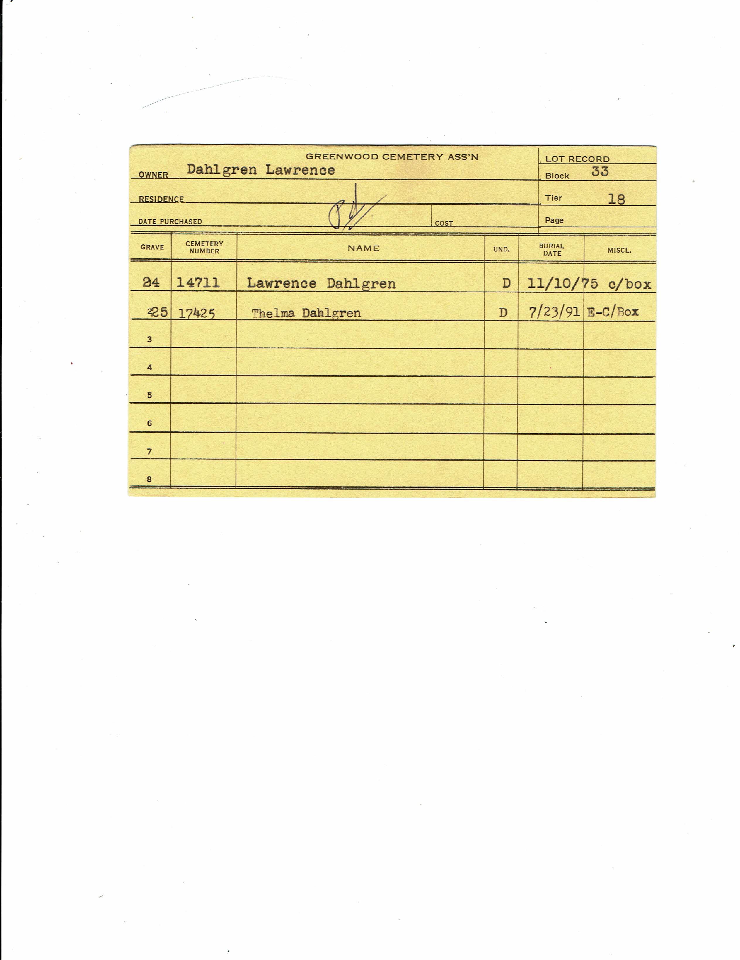 Block 33, Lot 18, Grave 25
