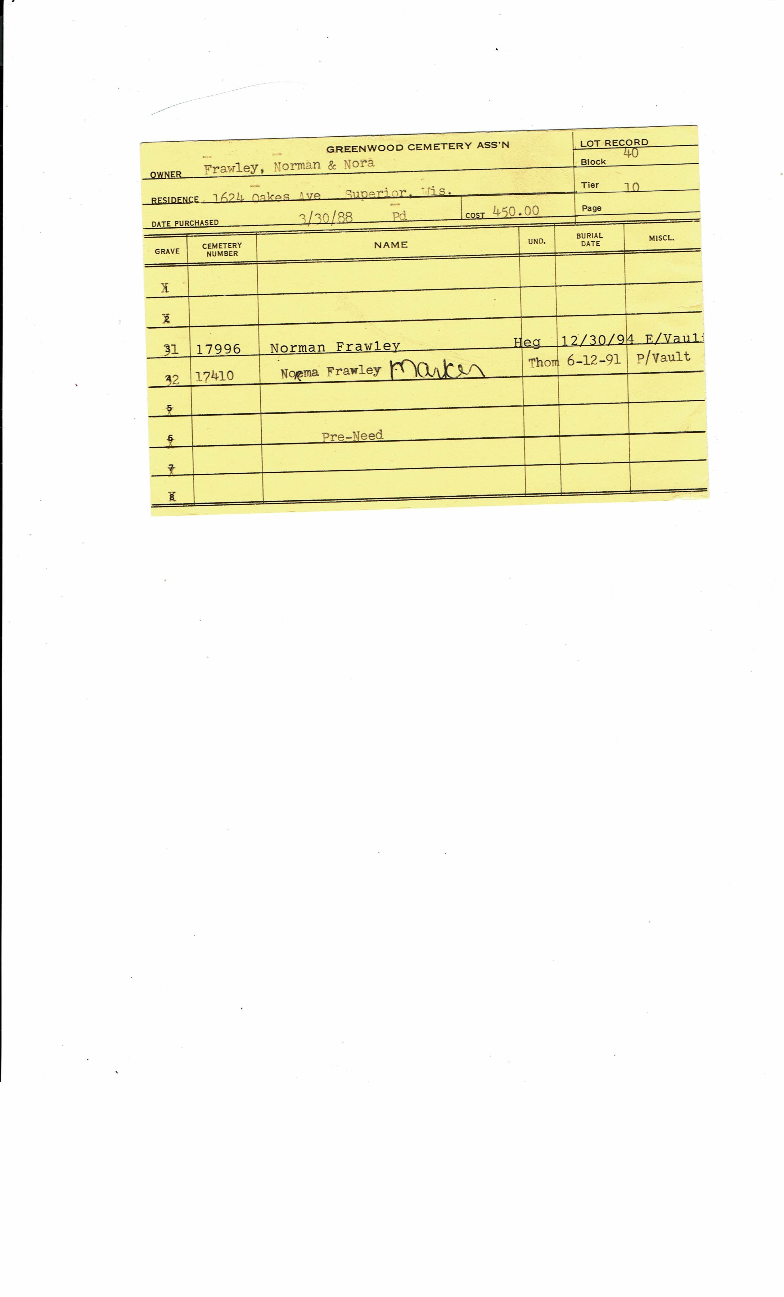 Greenwood Cemetery Association Online Records