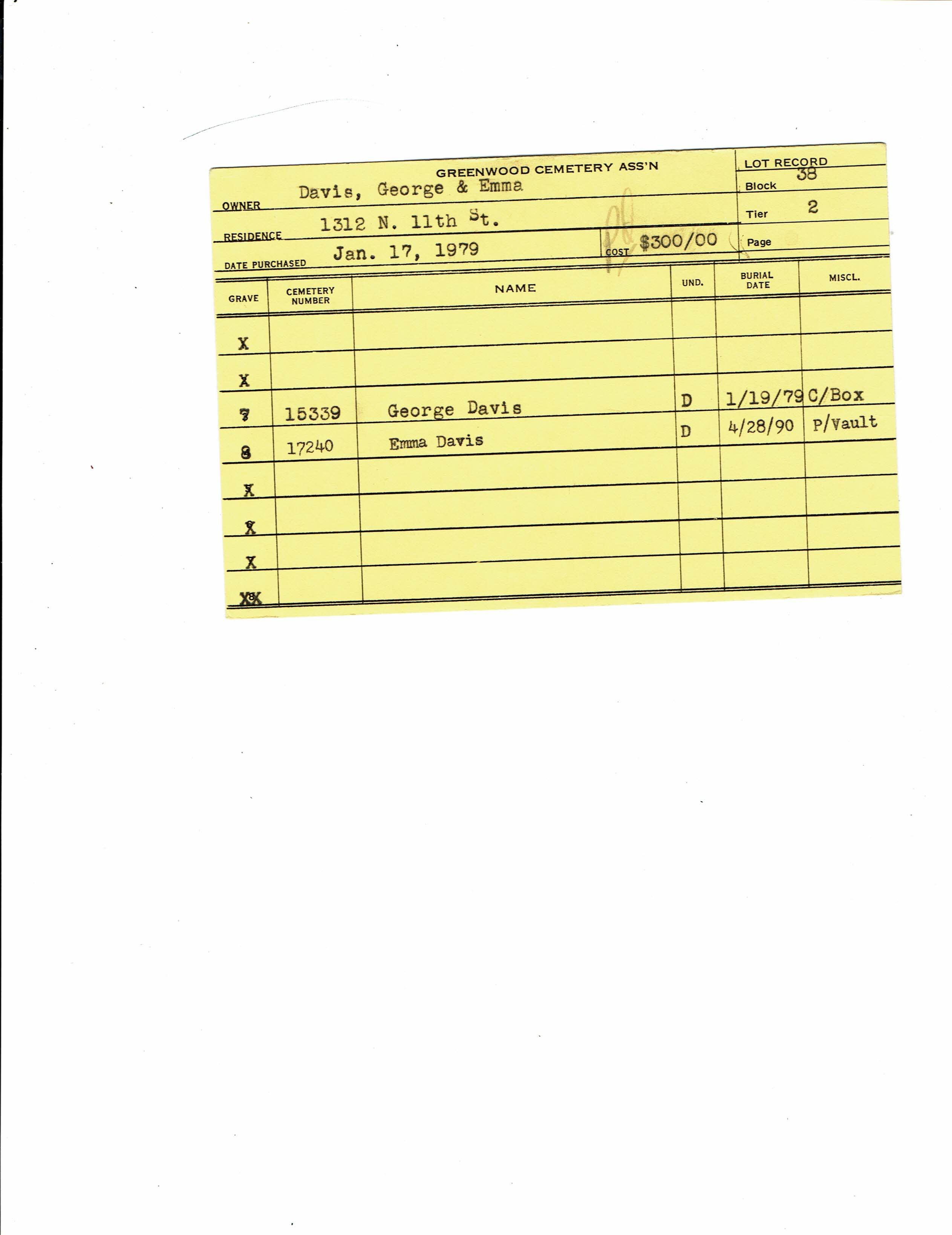 Block 33, Tier 03, Lot 1, Grave 31
