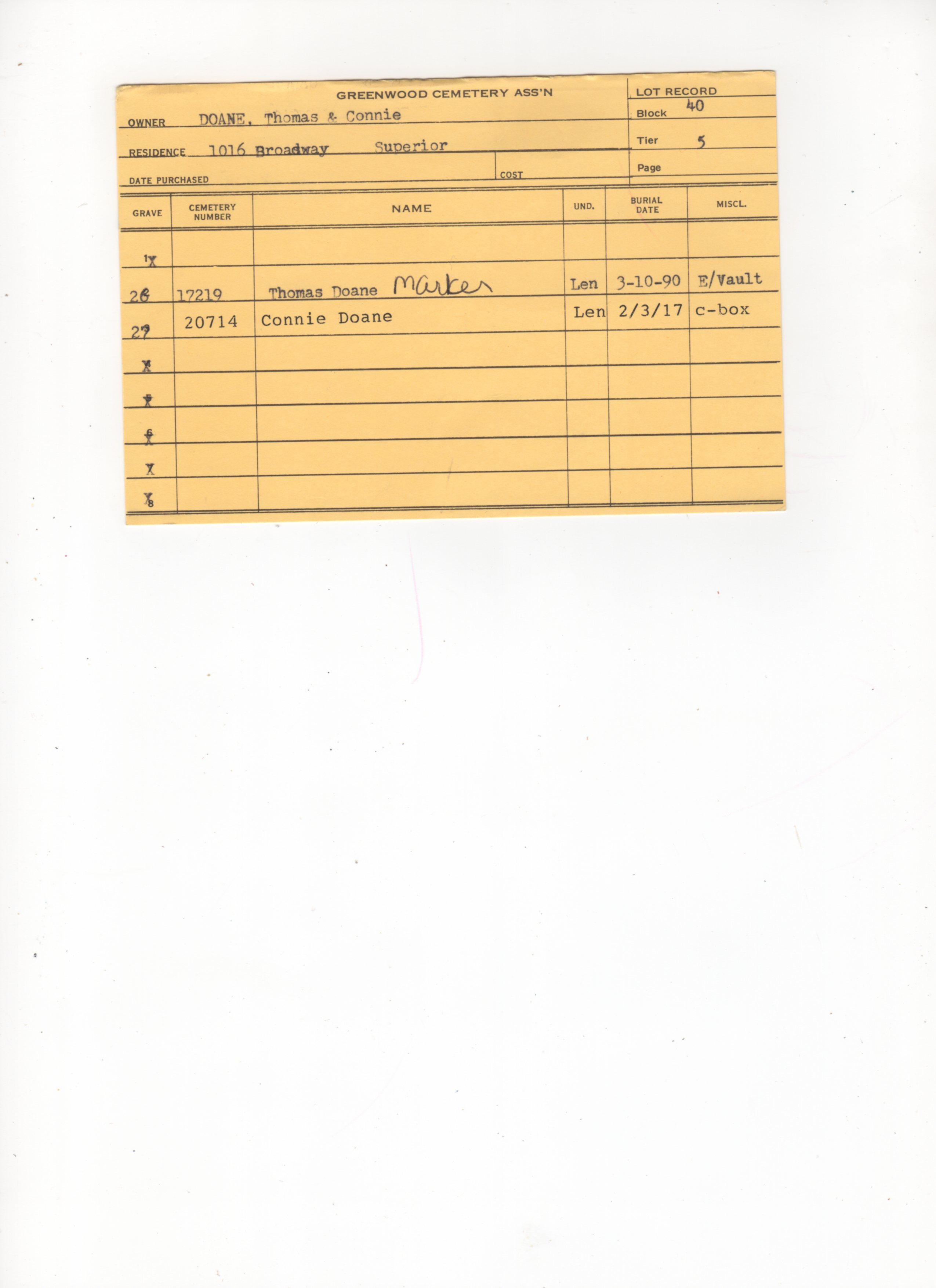 Greenwood Cemetery Association Online Records