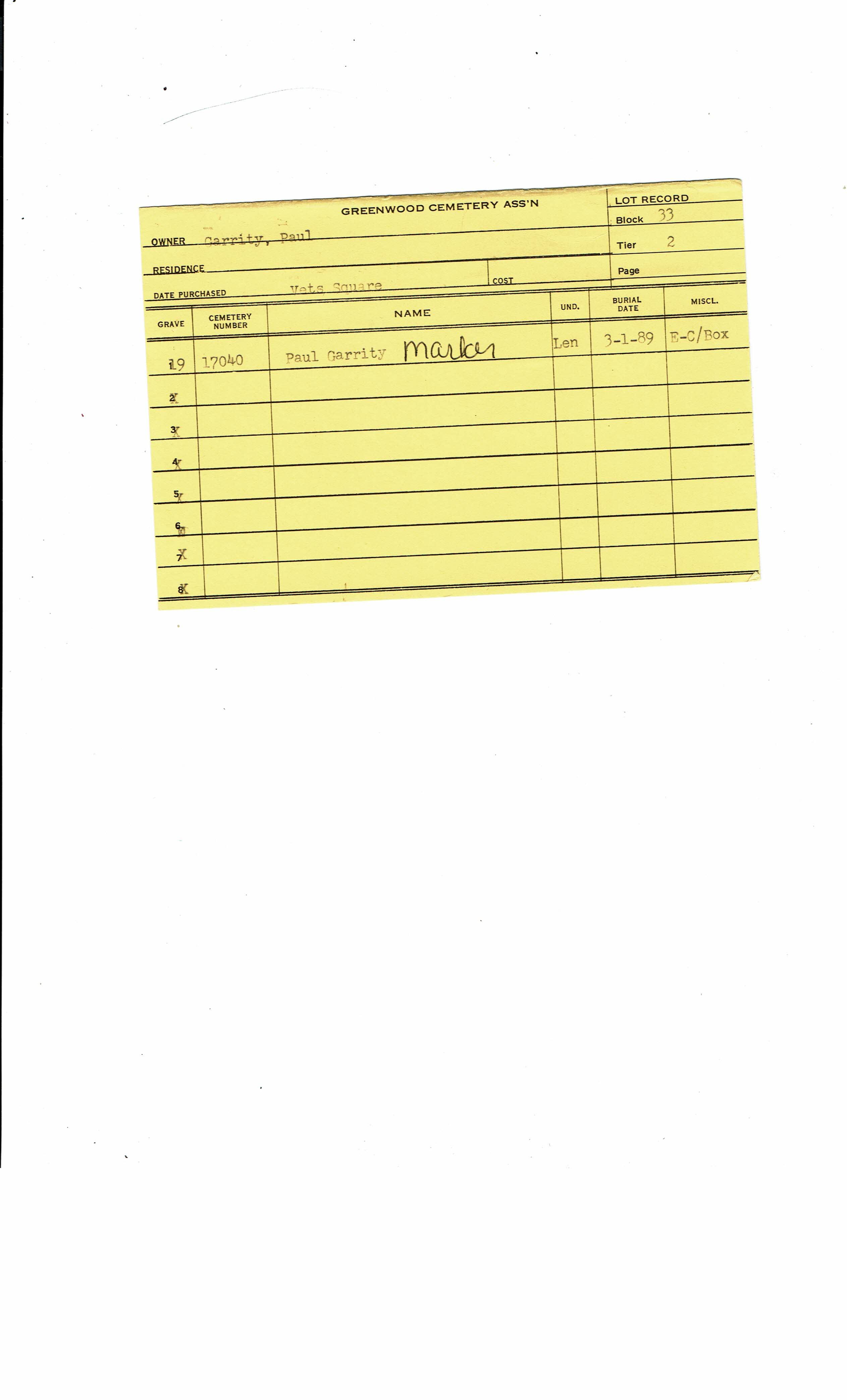 Block 33, Tier 2, Grave 19