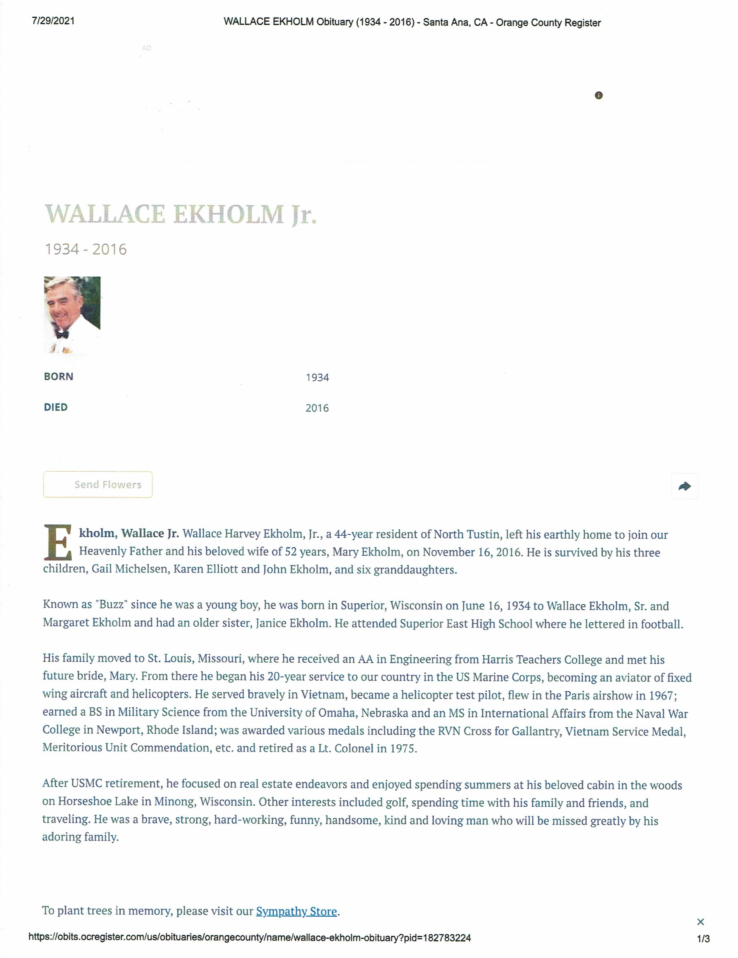Wallace H Ekholm Jr