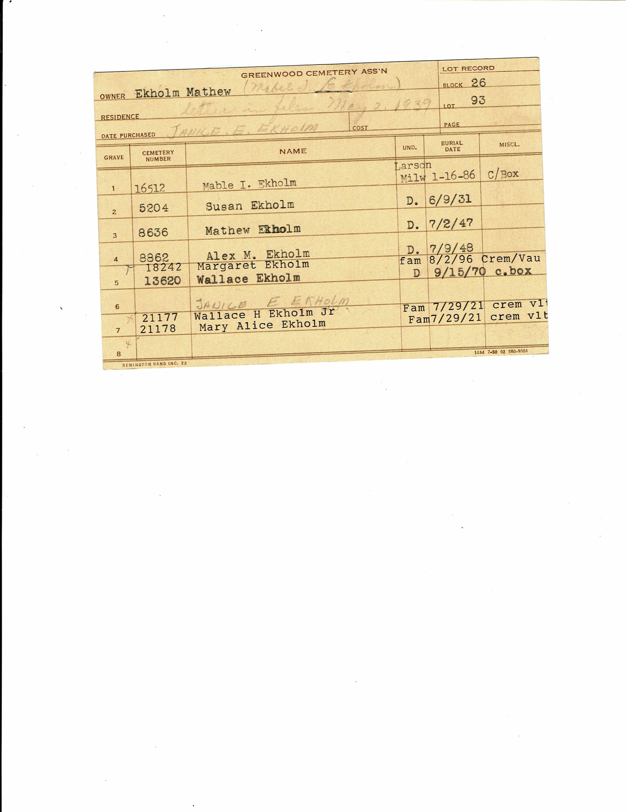 Block 26, Tier 93, Grave 7