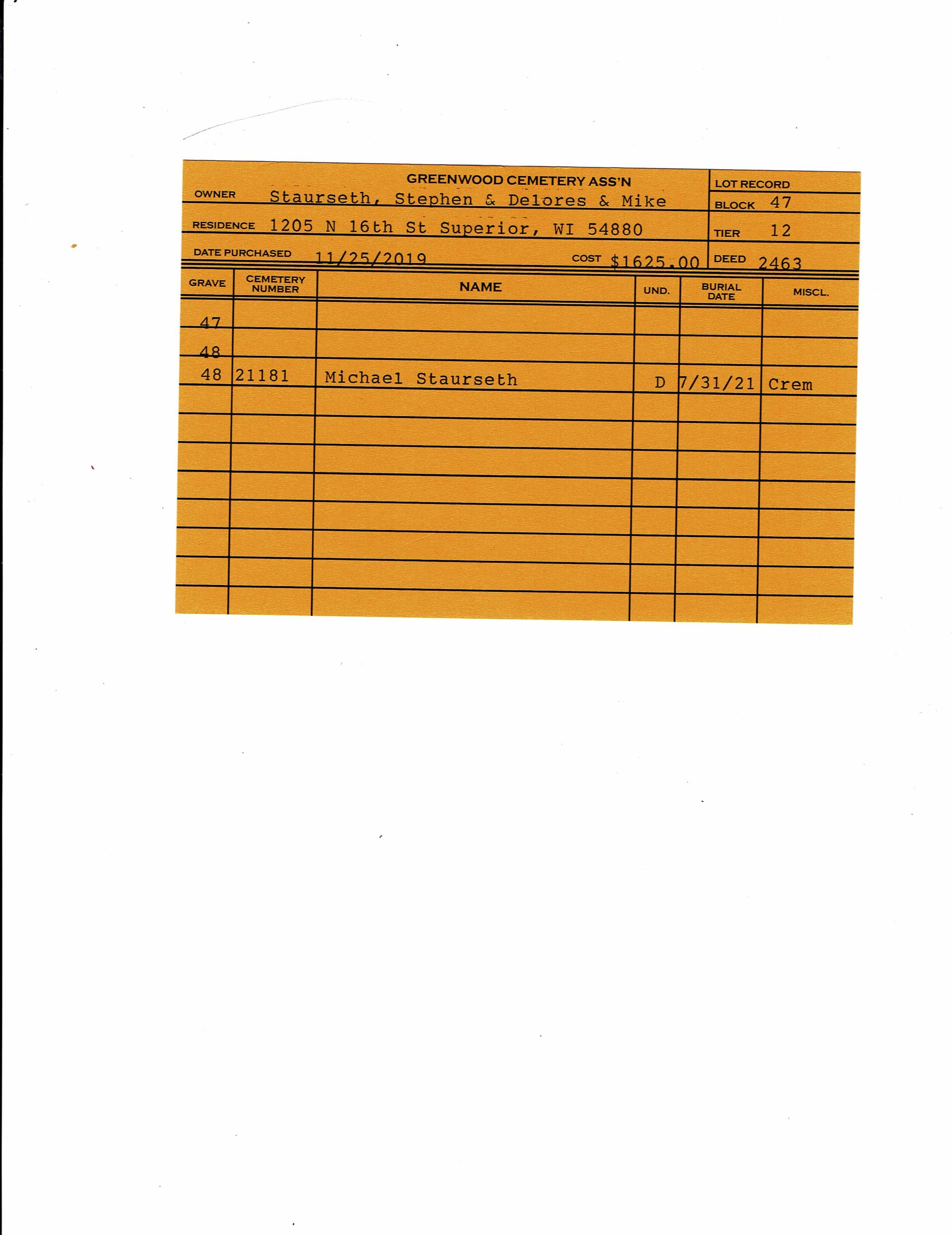Block 47, Tier 12, Grave 48