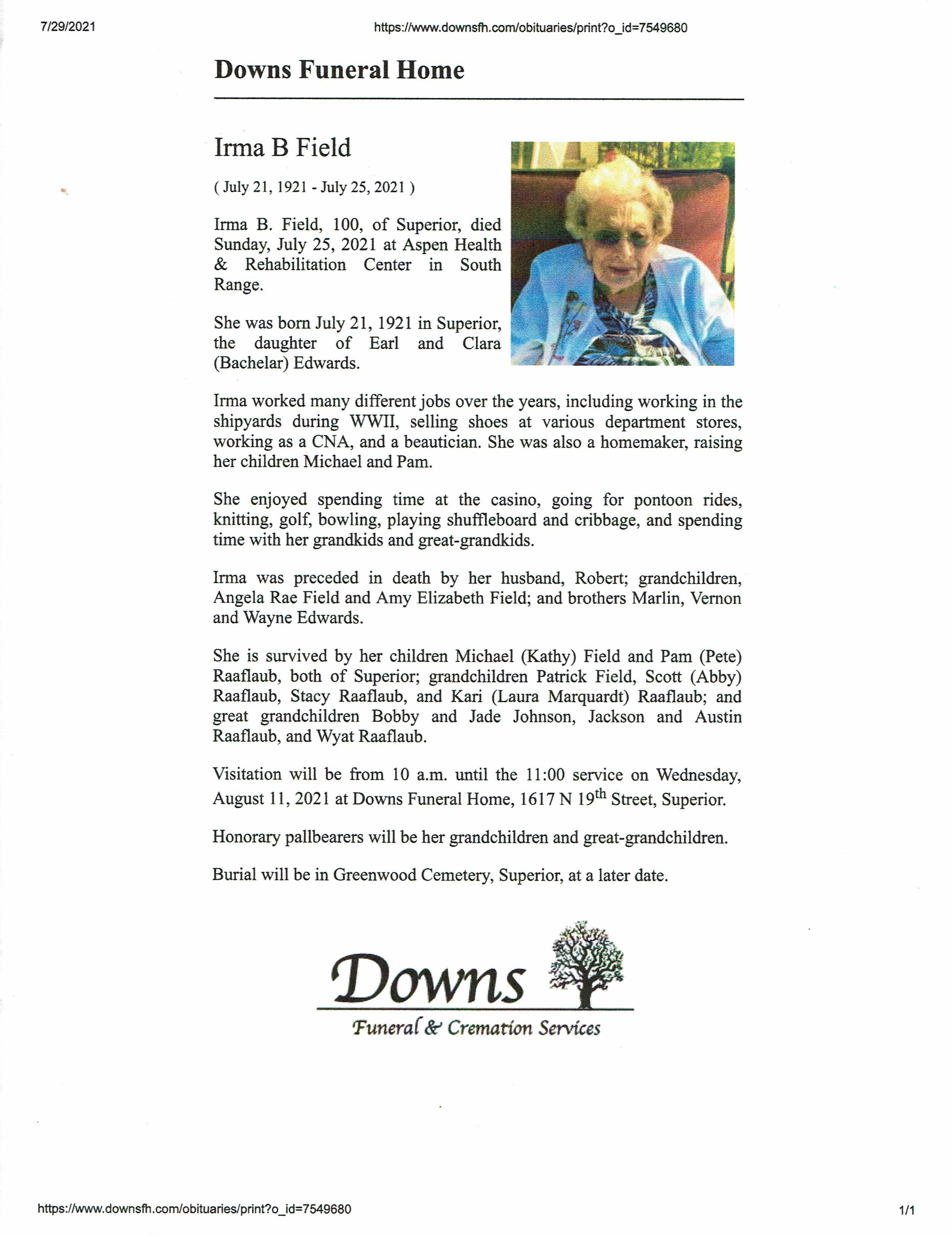 Irma B Field