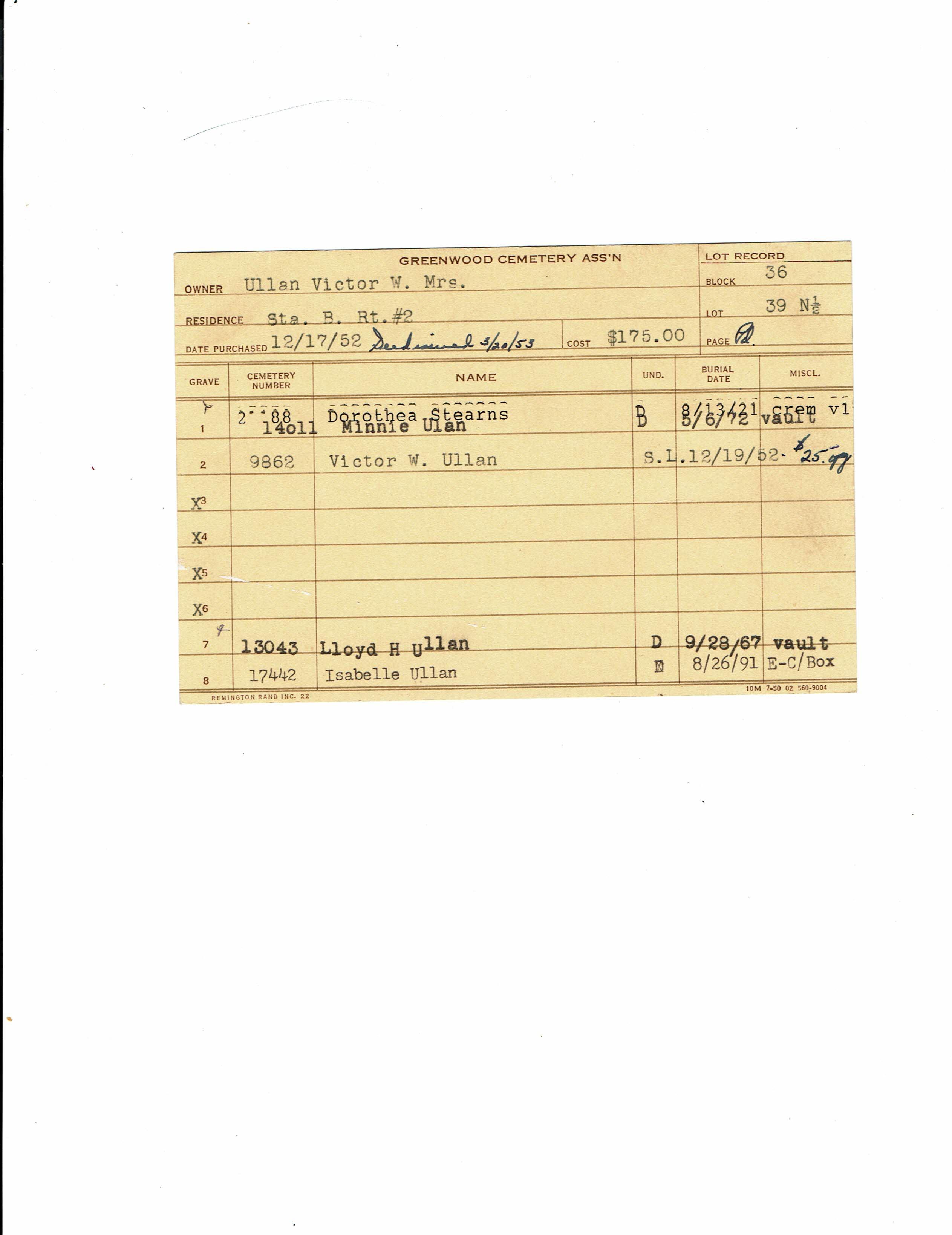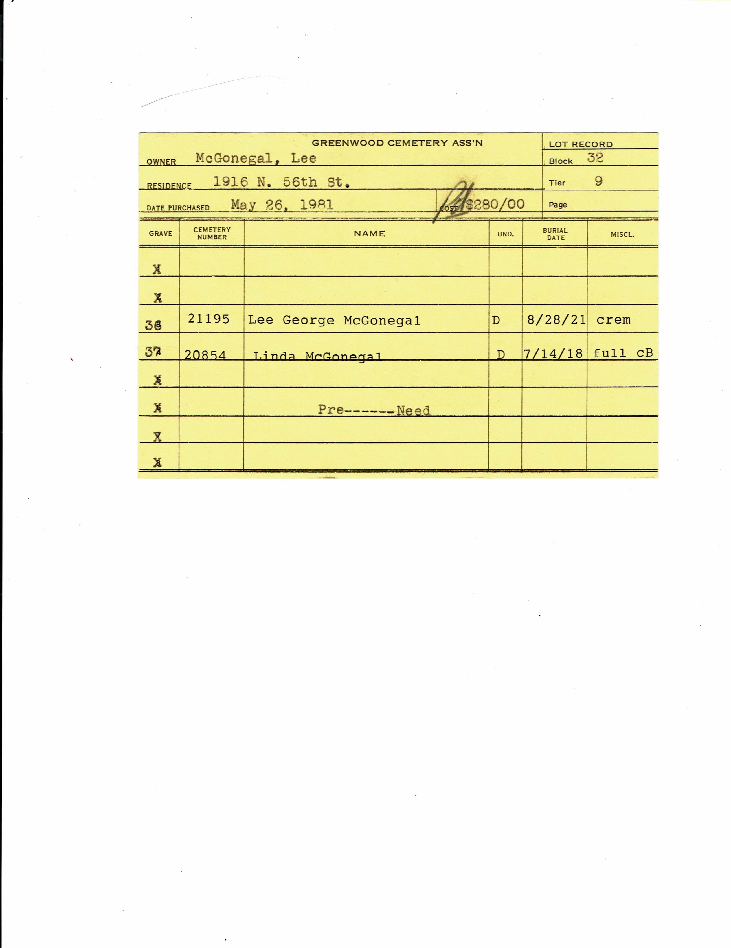 Block 32, Lot 1, Grave 43
