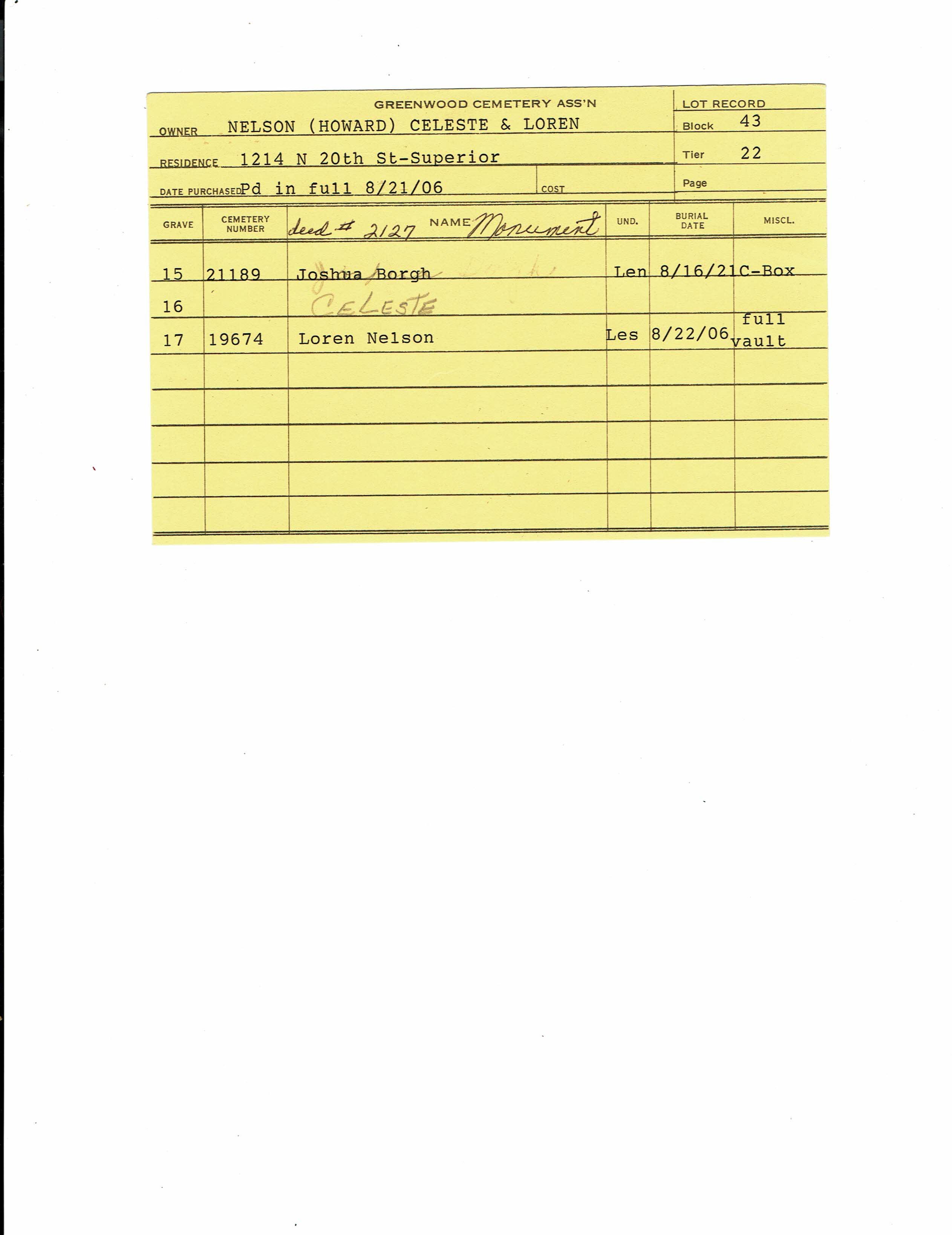 Block 43, Tier 22, Grave 15