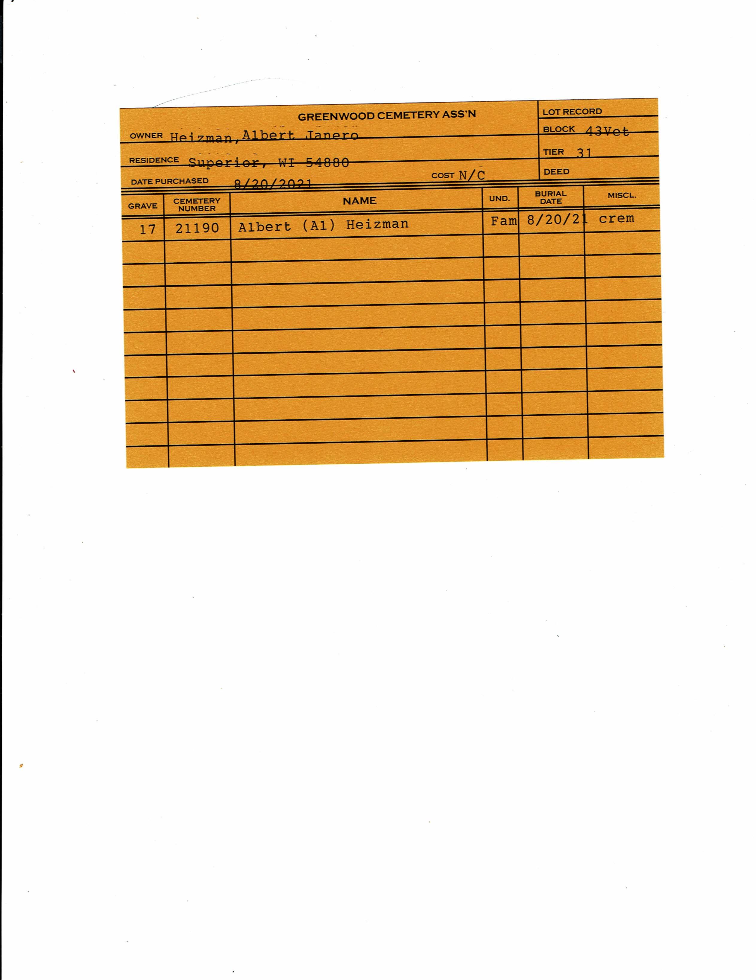 Block 43, Tier 31, Grave 17