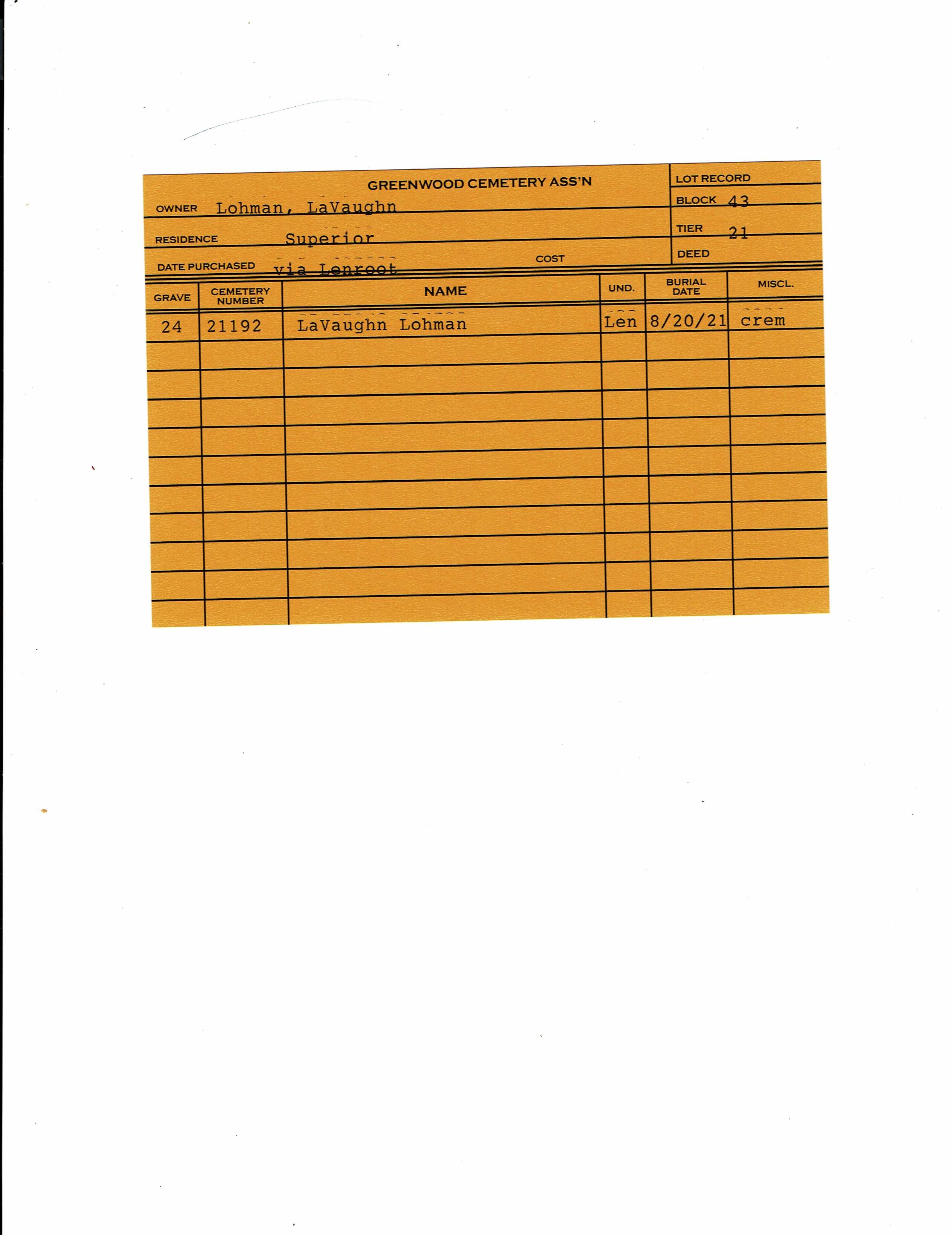 Block 43, Tier 21, Grave 24