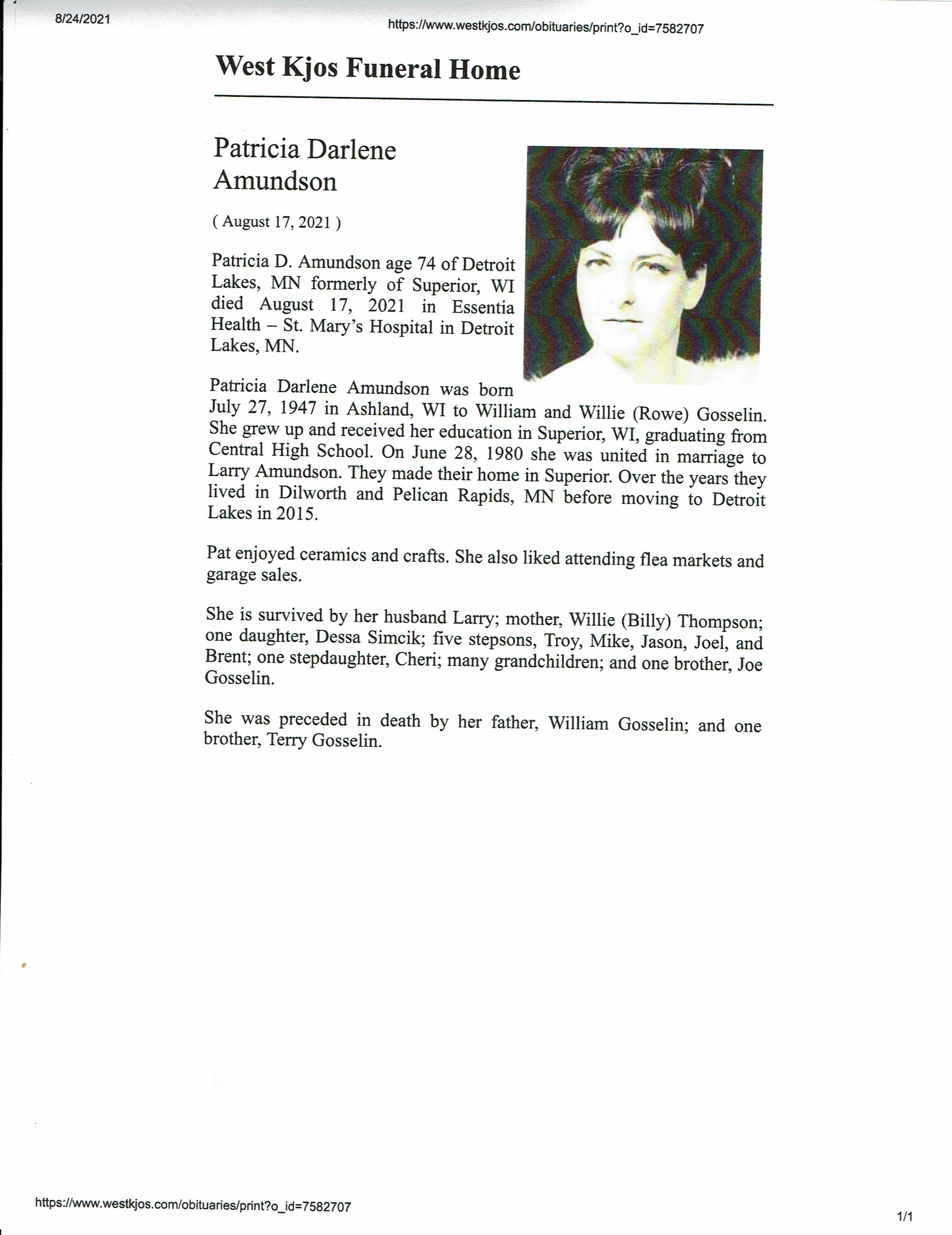 Patricia Darlene Amundson