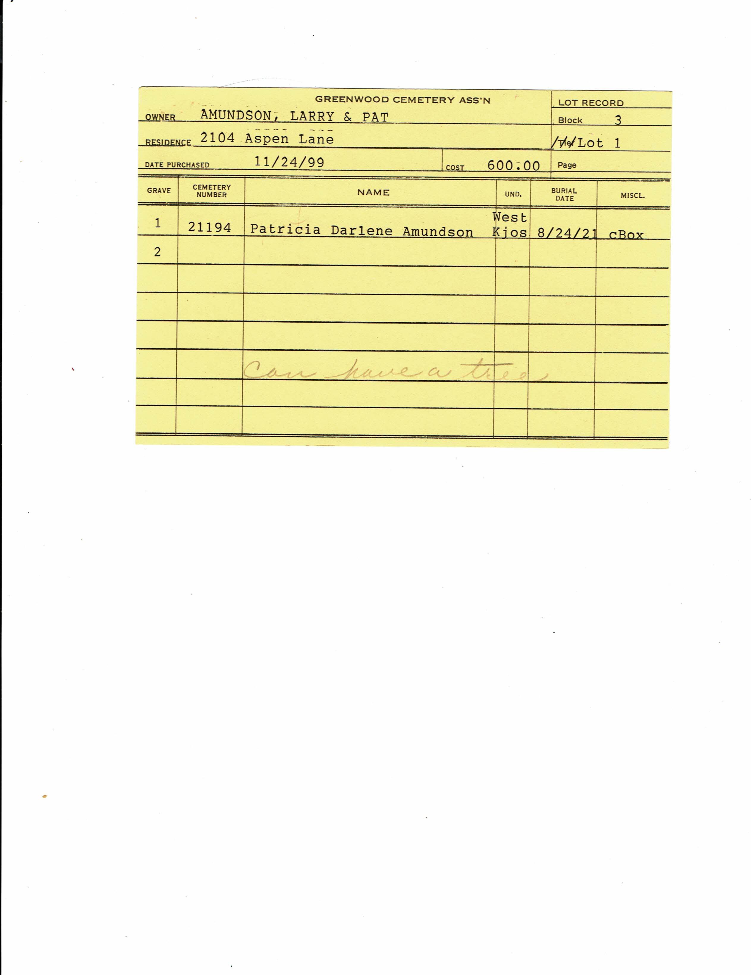 Block 3, Lot 1, Grave 1