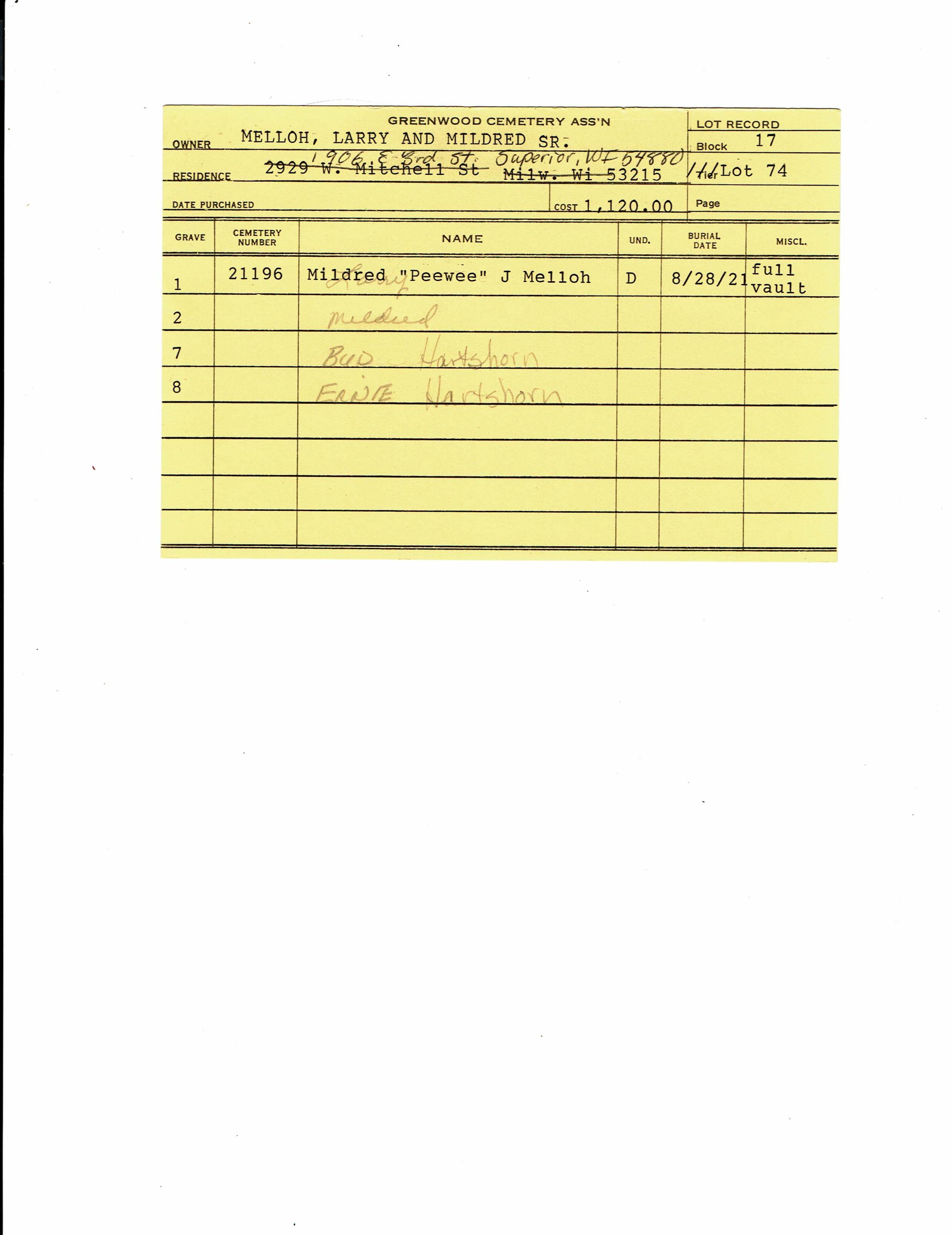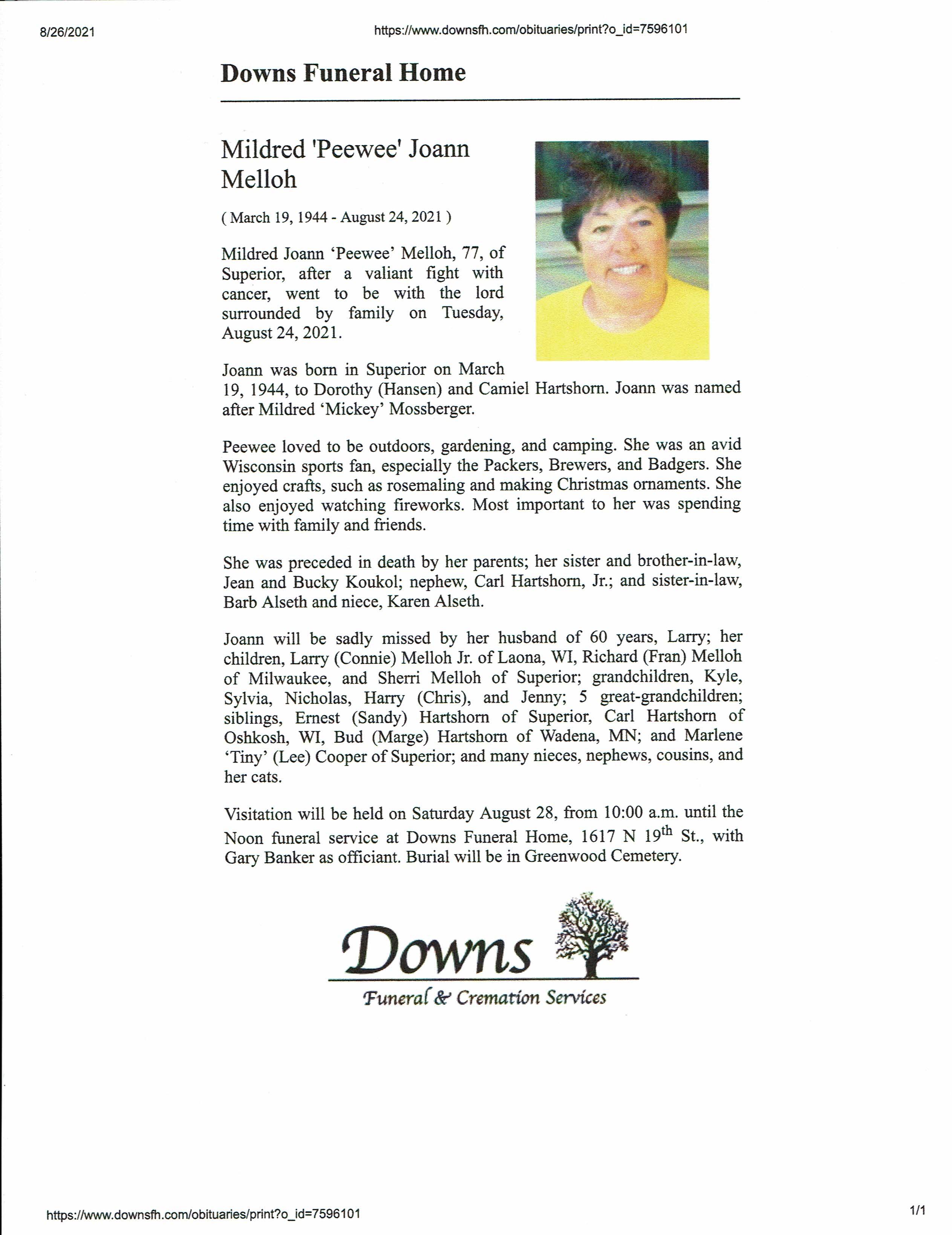 Mildred Peewee Joann Melloh