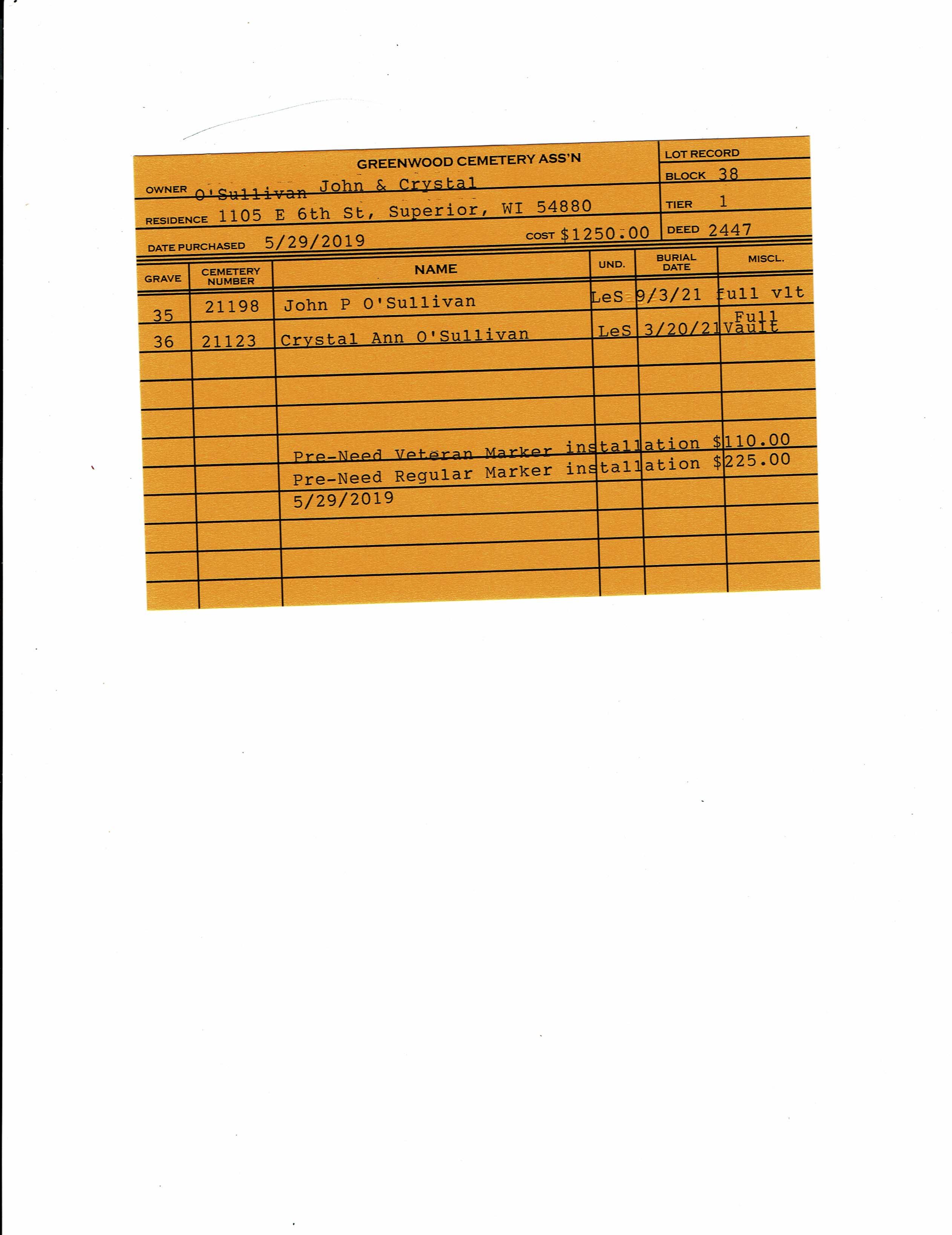 Block 38, Tier 1, Grave 35