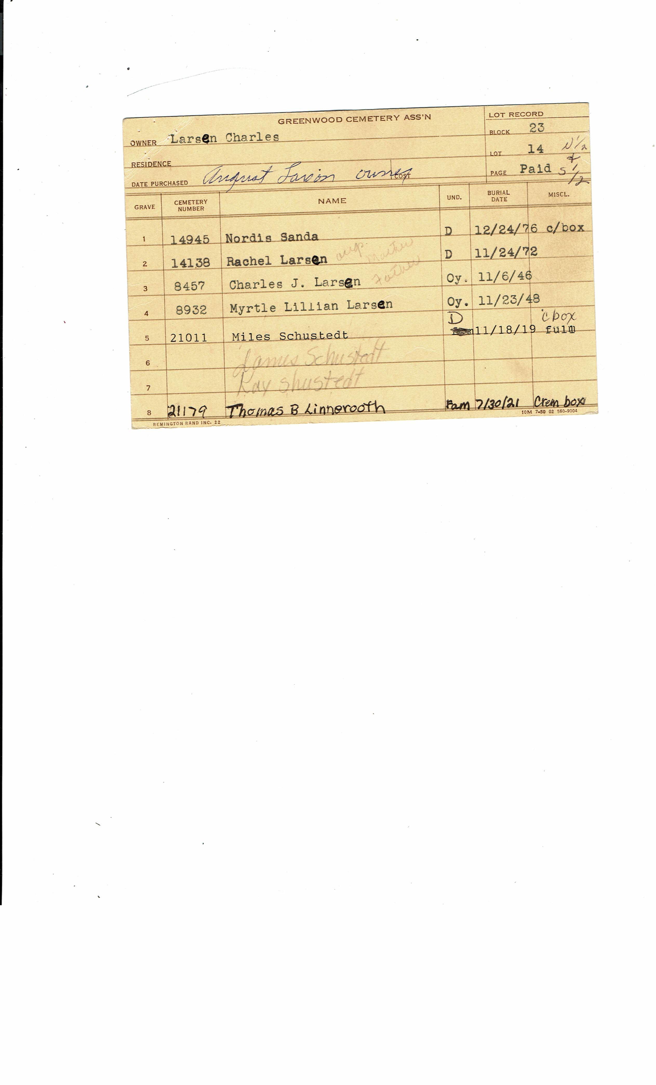 Block 23, Lot 14, Grave 8