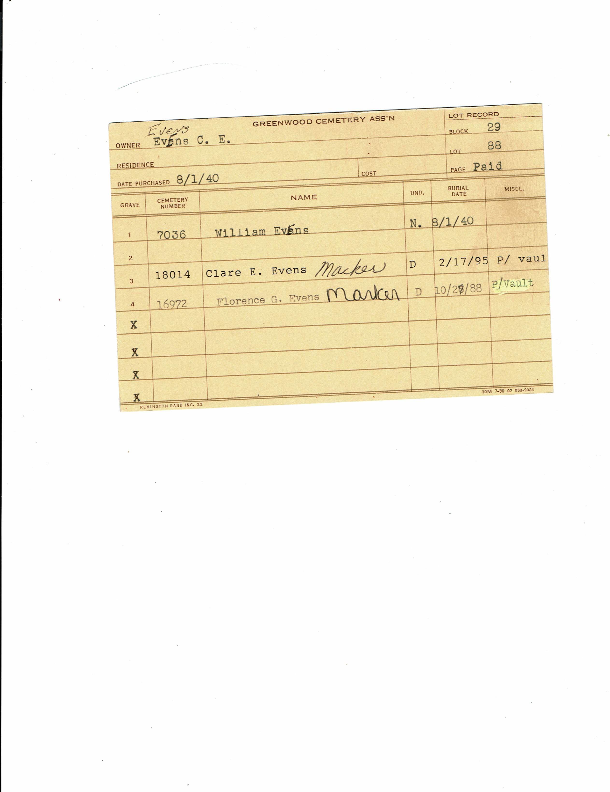 Greenwood Cemetery Association Online Records